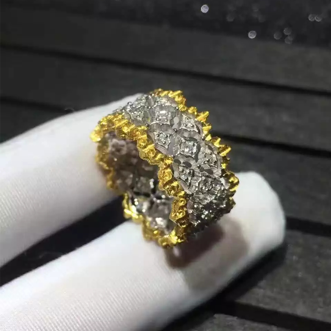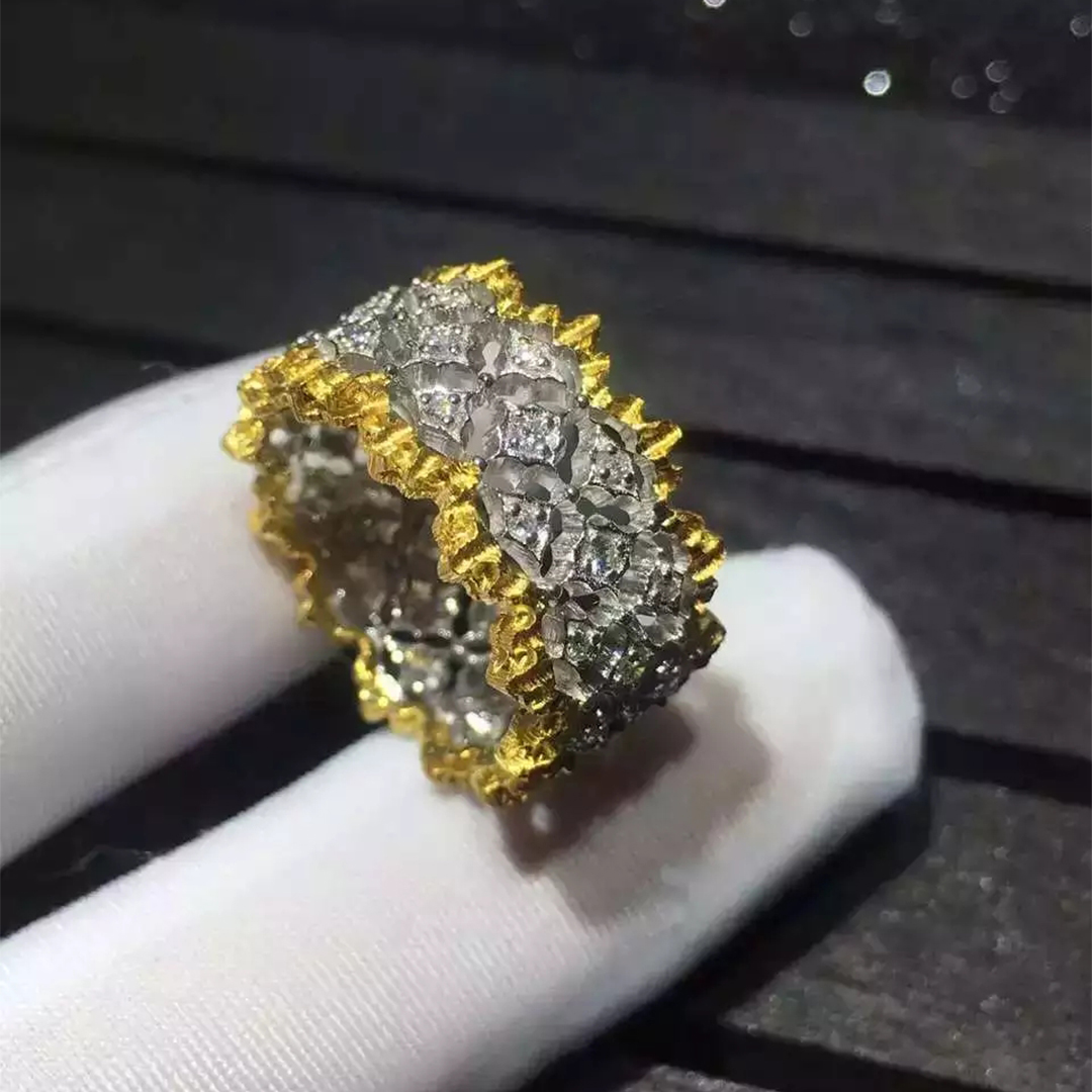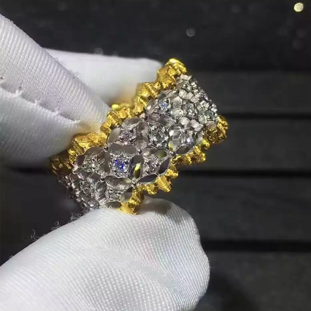 Buy Real solid 18k gold and genuine diamonds Buccellati jewelry from KissTheLuxury.com. Top workmanship and factory direct selling. If you love this Custom Made Buccellati 18K Yellow Gold & White Gold Rombi Diamond Wide Band Ring, Please inquire us via E-mail [email protected] or Whatsapp +1 (262)806-8175 for pricing.