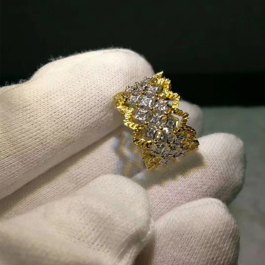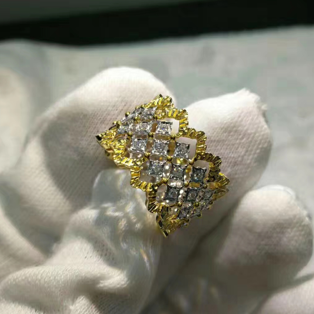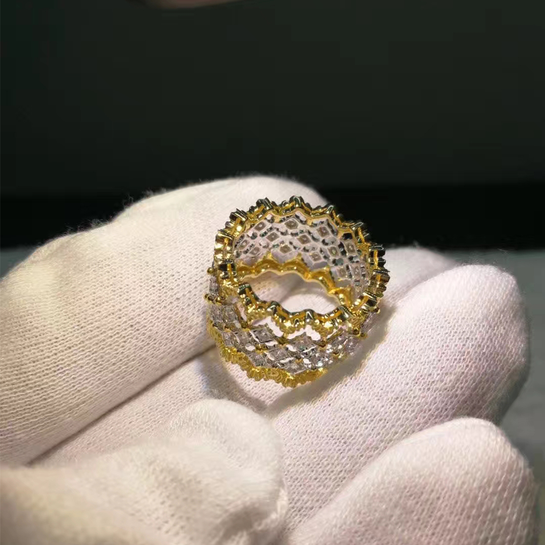 Buy Real solid 18k gold and genuine diamonds Buccellati jewelry from KissTheLuxury.com. Top workmanship and factory direct selling. If you love this Custom Made Buccellati 18K Yellow Gold & White Gold Rombi Diamond Wide Band Ring, Please inquire us via E-mail [email protected] or Whatsapp +1 (262)806-8175 for pricing.