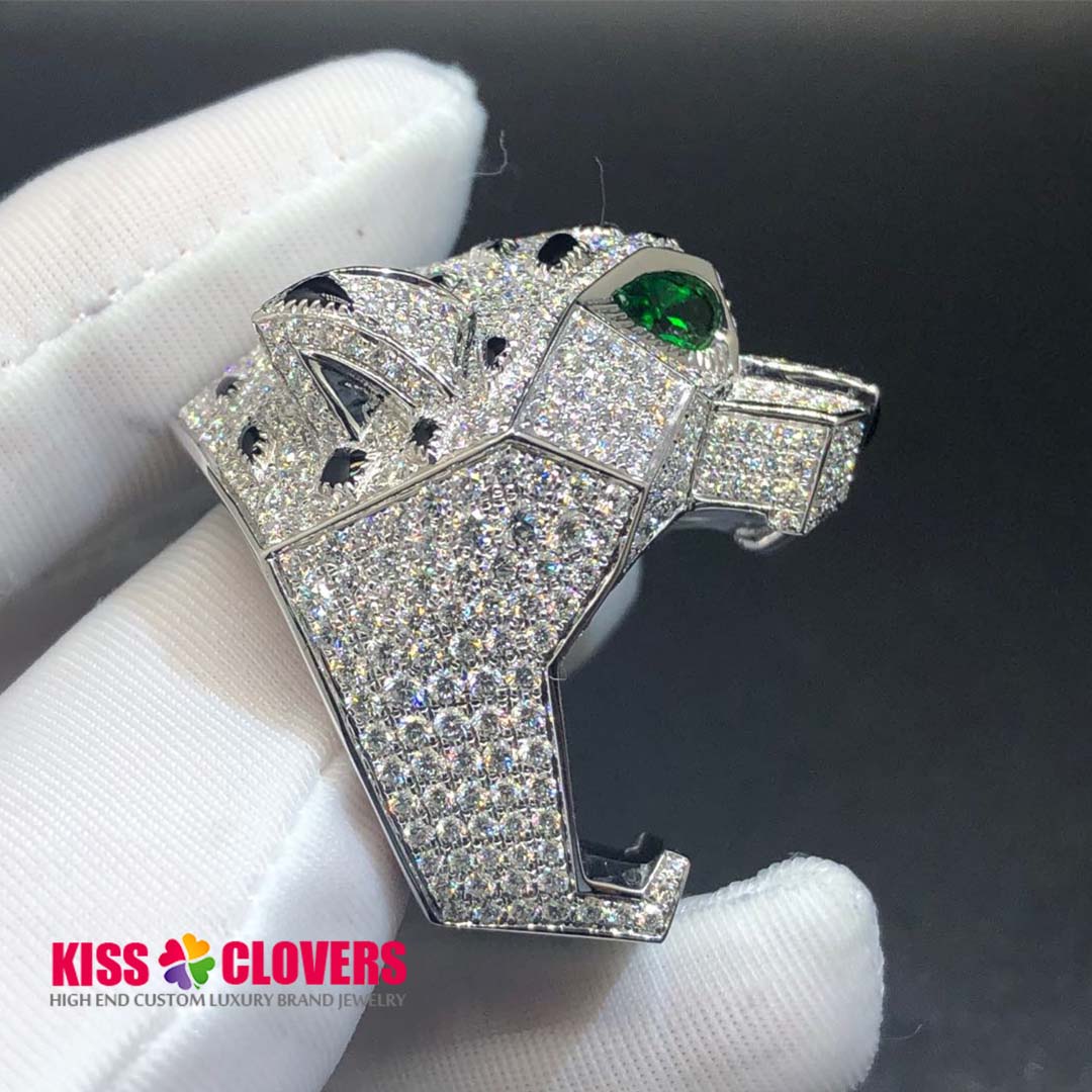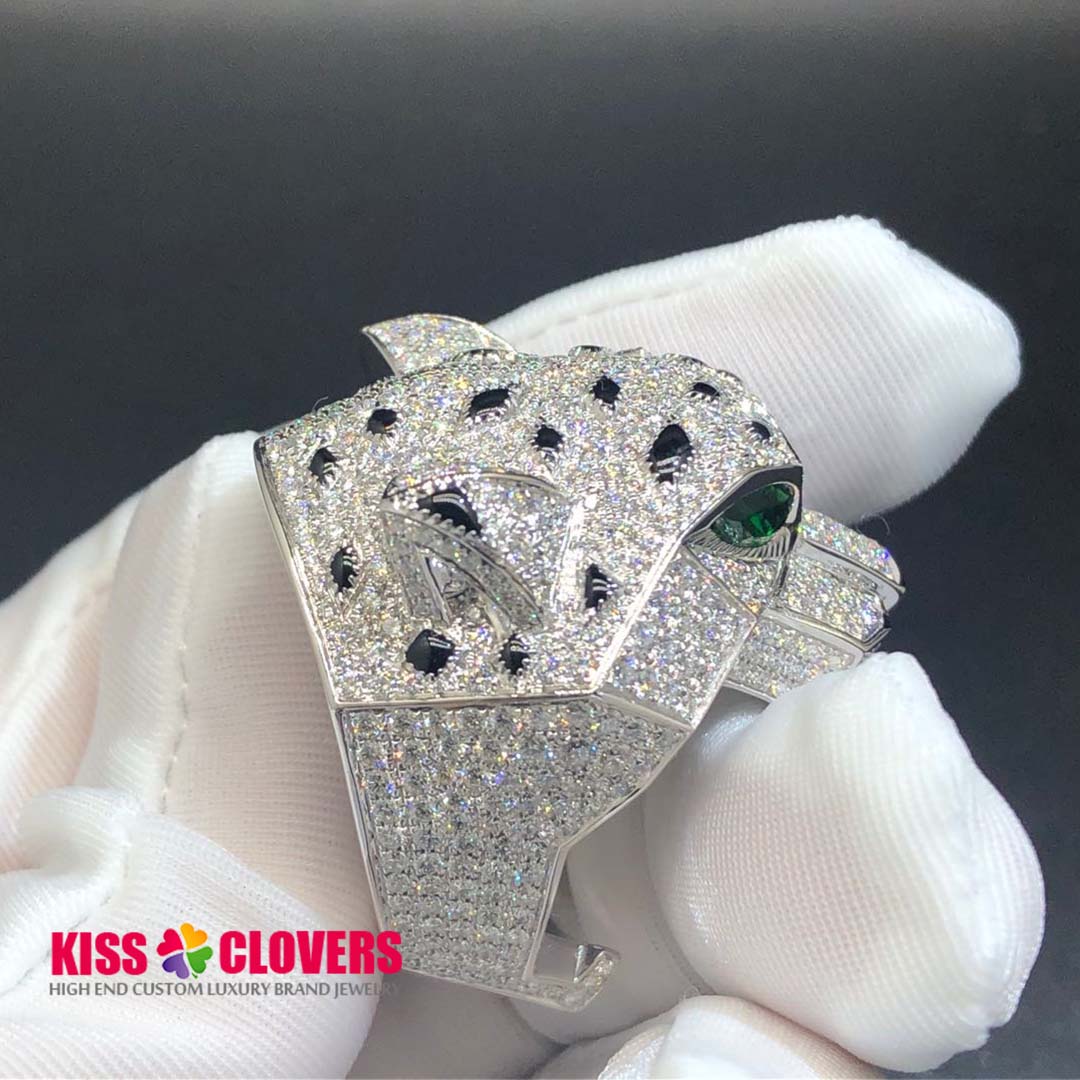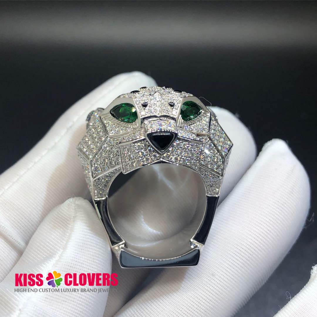 Buy Real solid 18k gold and genuine diamonds Cartier jewelry from KissTheLuxury.com. Top workmanship and factory direct selling. If you love this Authentic Cartier 18k White Gold Full Diamond Pave Onyx Emerald Panthere de Cartier ring, Please inquire us via E-mail [email protected] or Whatsapp +1 (262)806-8175 for pricing.