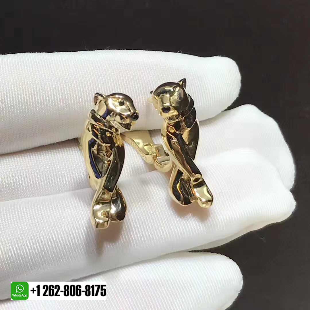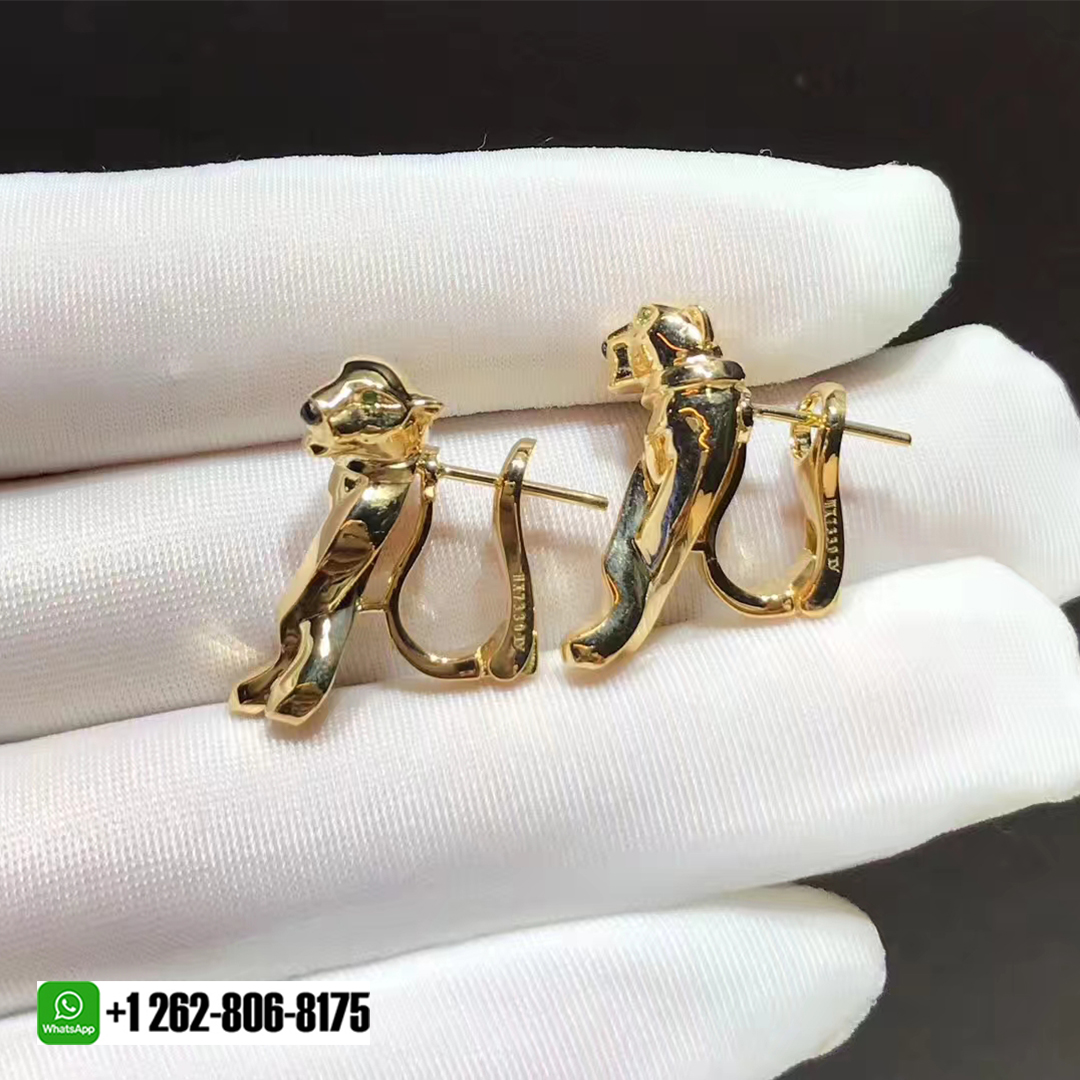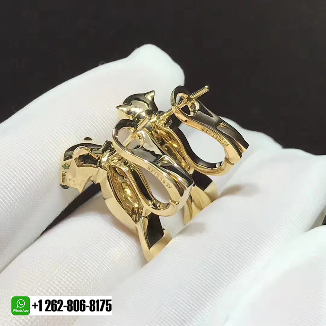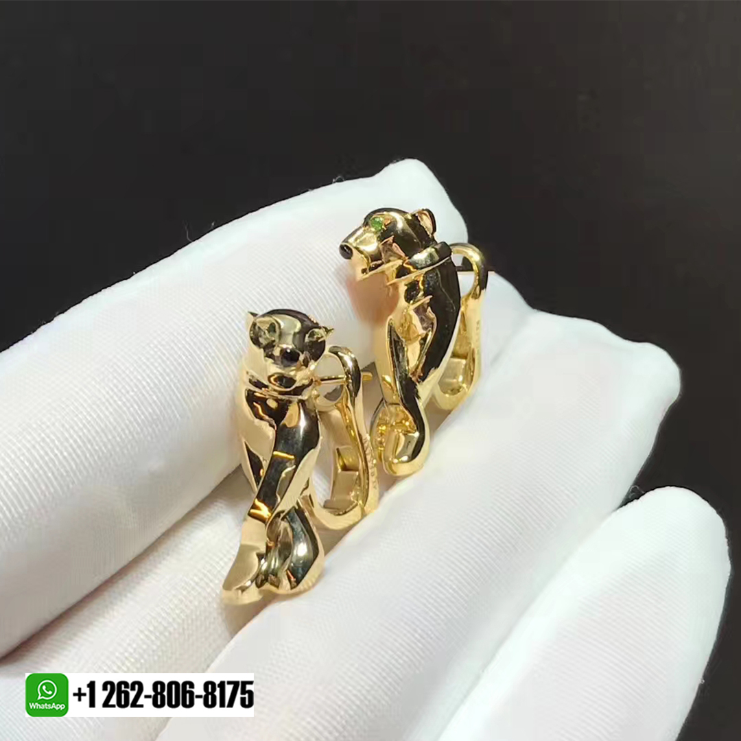 • Cartier 18k Yellow Gold Tsavorite Garnet and Black Lacquer Panthere Earrings