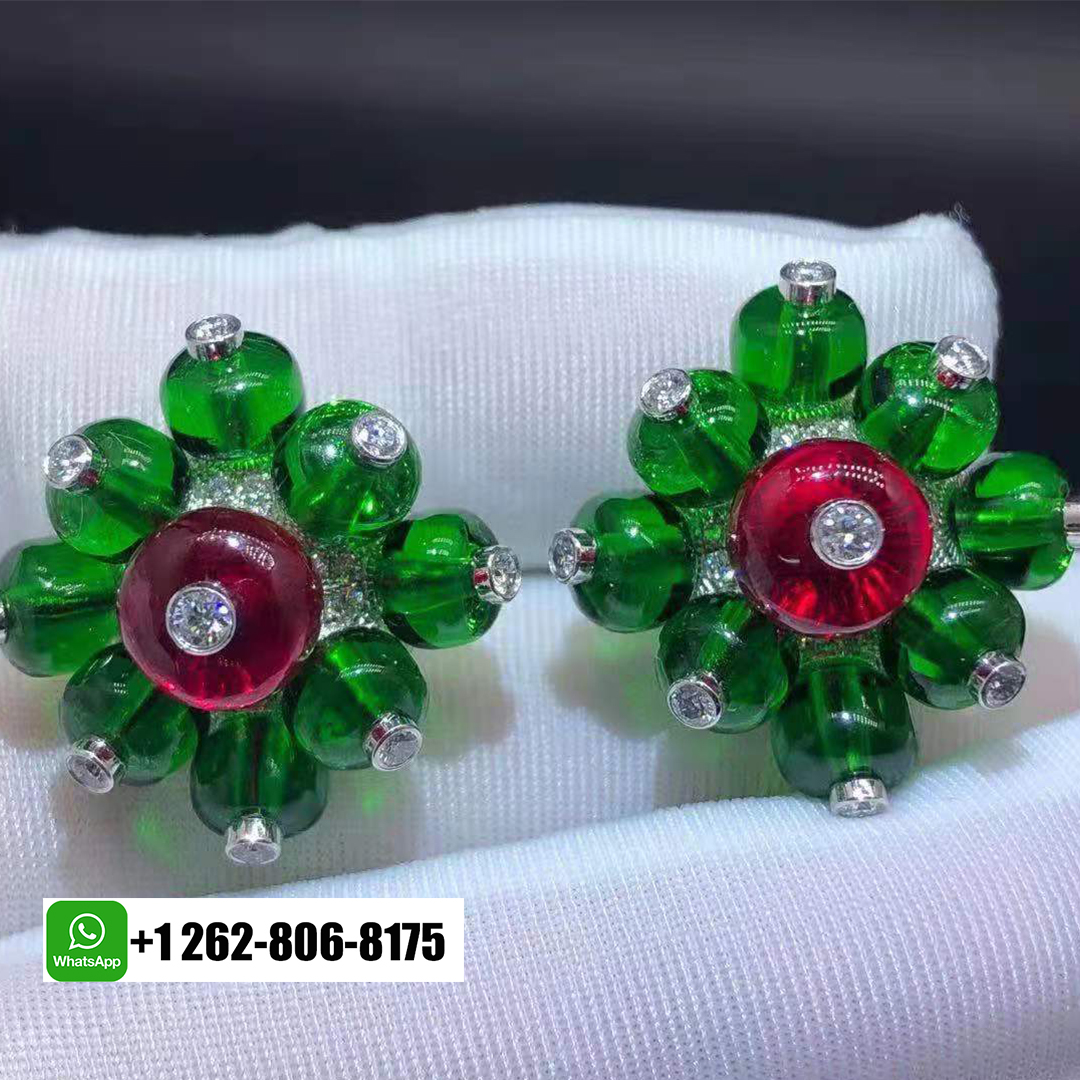 Cartier Tutti Frutti High Jewelry Earrings – platinum, ruby beads, emerald beads from Afghanistan, brilliant-cut diamonds.