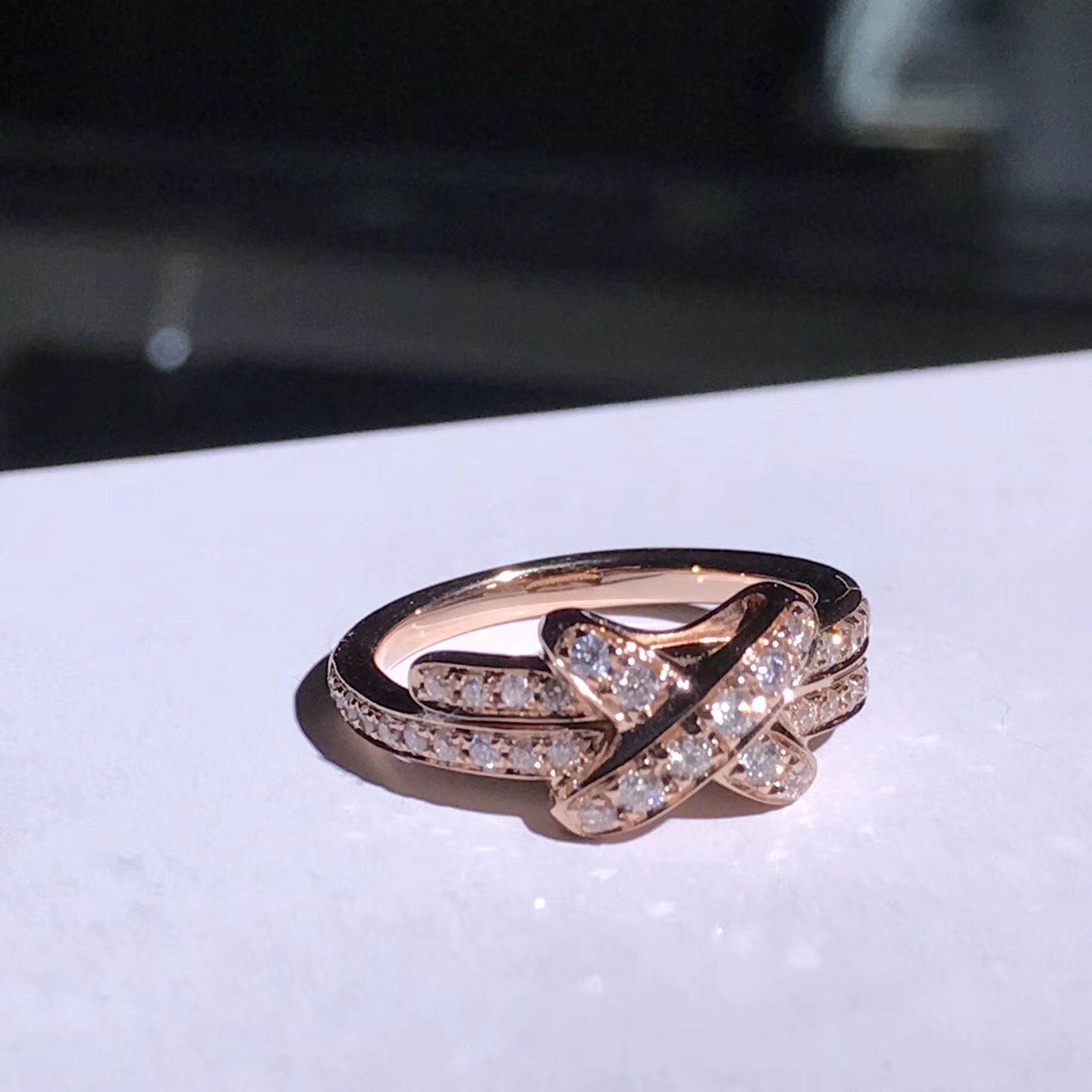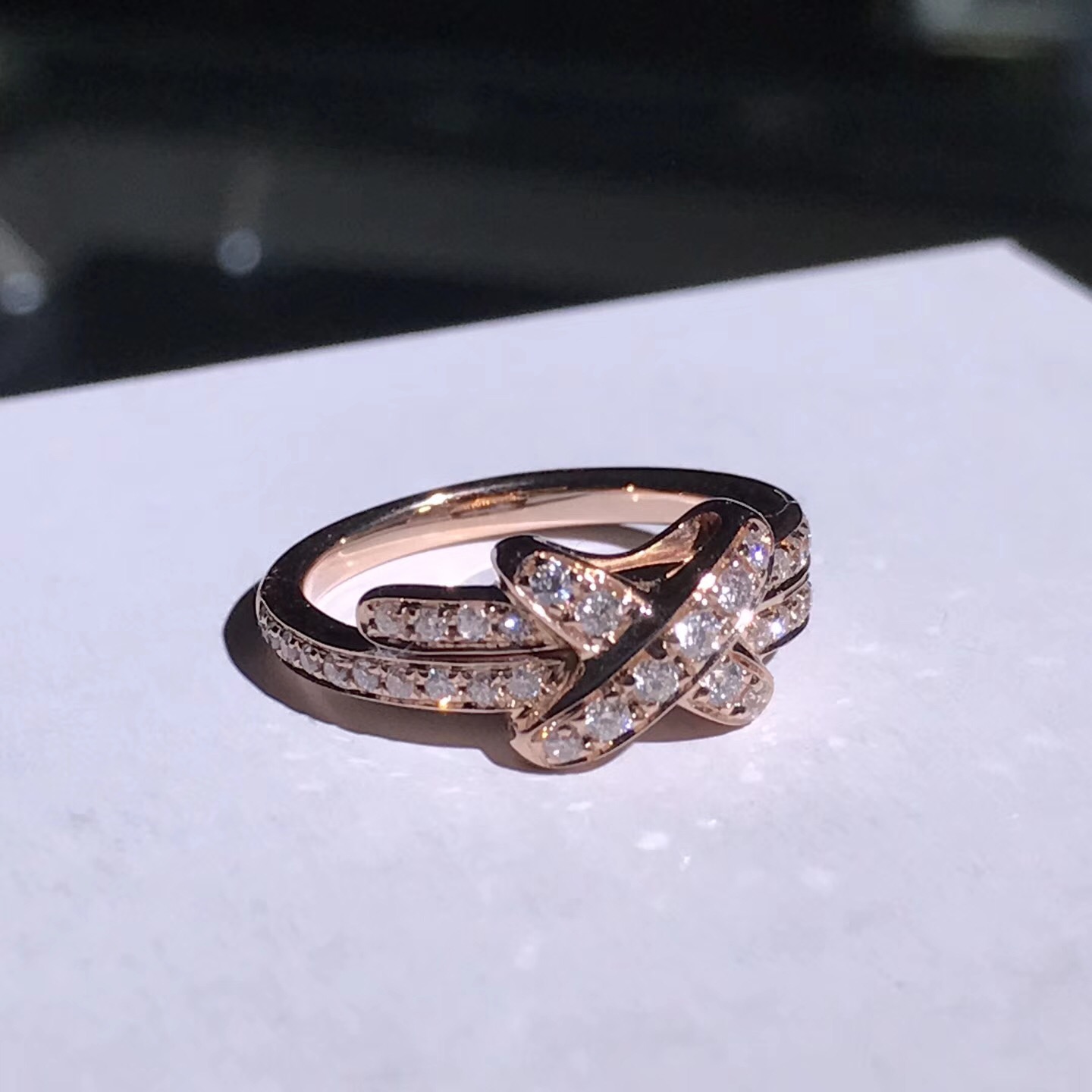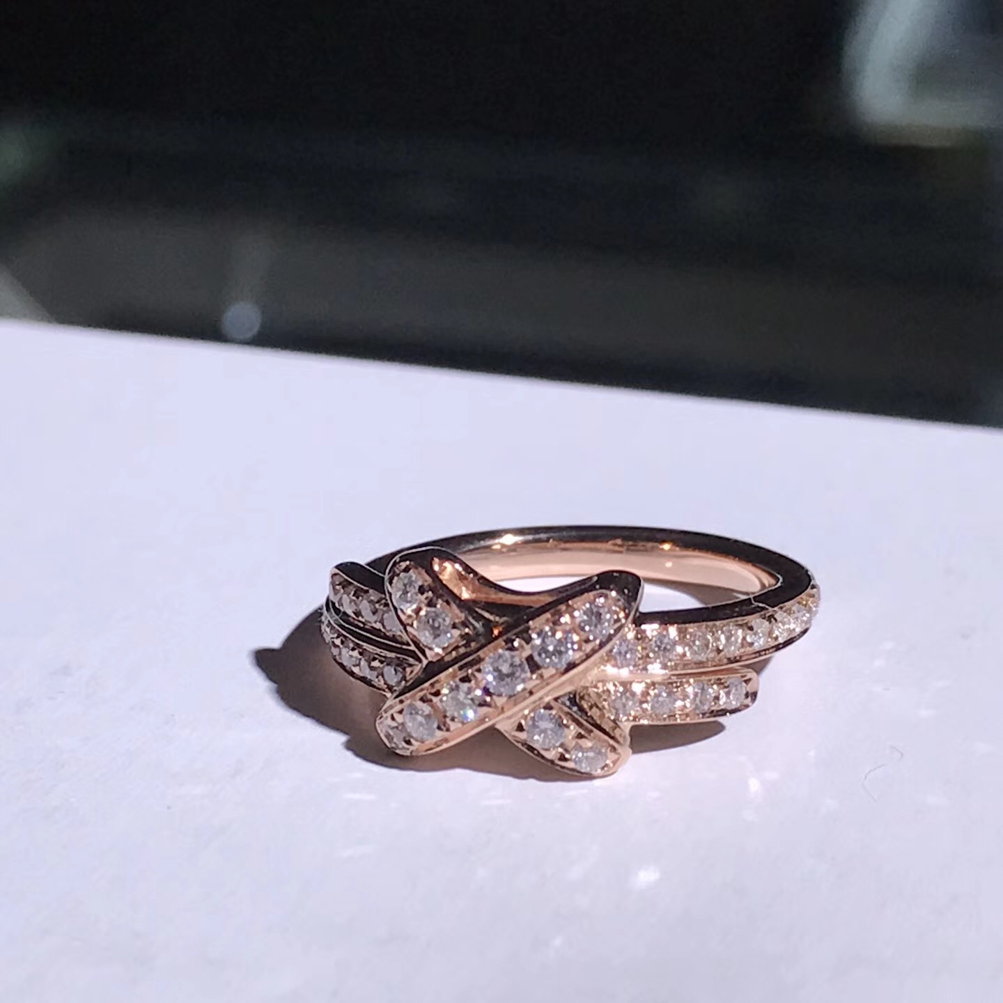 • Chaumet 18k Rose Gold Jeux de Liens Pavé Diamond Bow Ring 082179