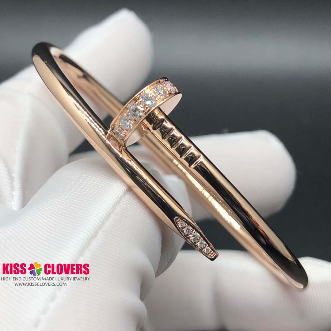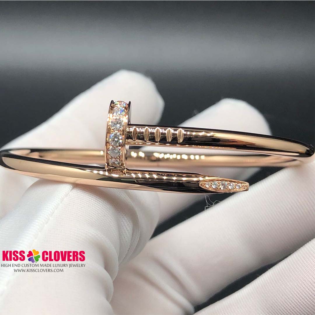 Do you love this Authentic 18K Pink Gold Classic Cartier Juste Un Clou 32 Diamonds Nail Bracelet? Here at KissTheLuxury.com, we can do specially for you in amazing price. 100% mirror quality, real solid 18k gold and genuine diamonds guaranteed. Top workmanship and factory direct selling. Please inquire us via E-mail [email protected] or Whatsapp +1 (262)806-8175 for pricing.