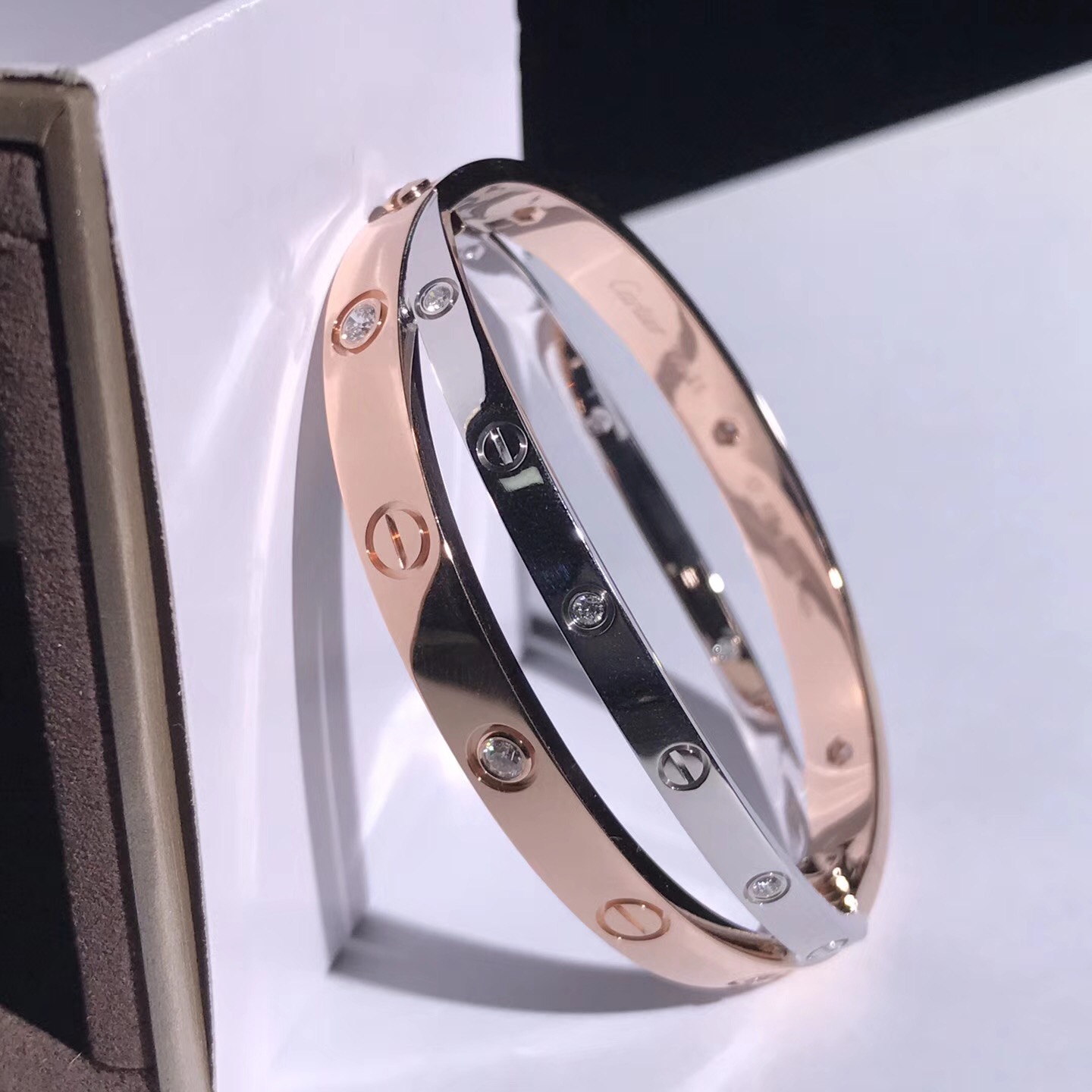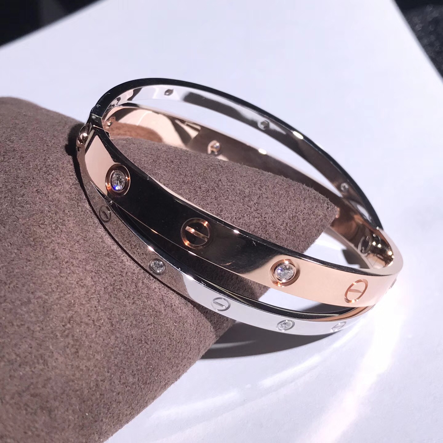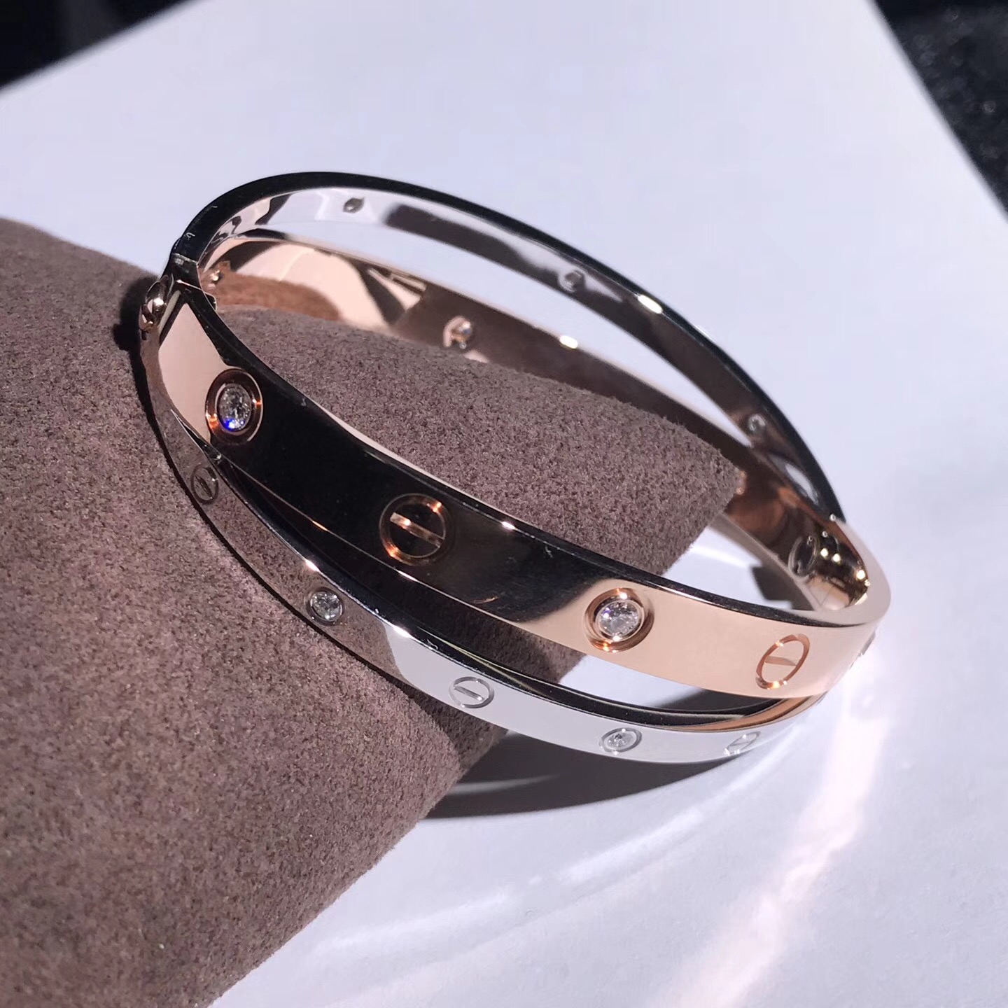 • Custom Made 18k Rose Gold and White Gold with 12 Diamond Cartier Love Bracelet N6039117