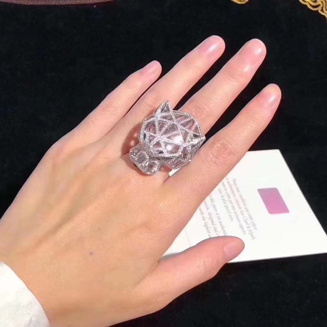 Buy Real solid 18k gold and genuine diamonds Cartier jewelry from KissTheLuxury.com. Top workmanship and factory direct selling. If you love this Authentic Cartier 18K White Gold Diamond Paved Panthère de Cartier Ring, Please inquire us via E-mail [email protected] or Whatsapp +1 (262)806-8175 for pricing.