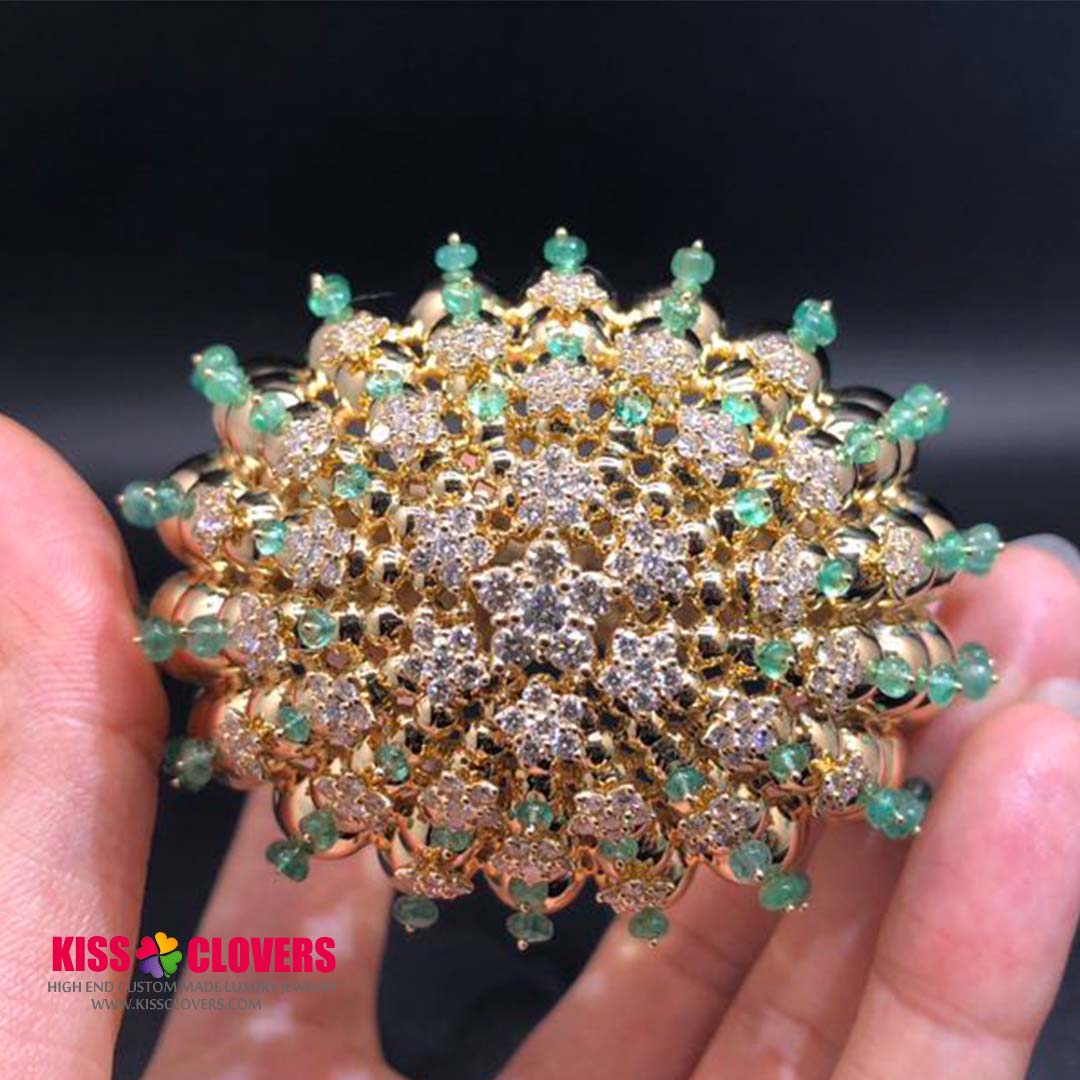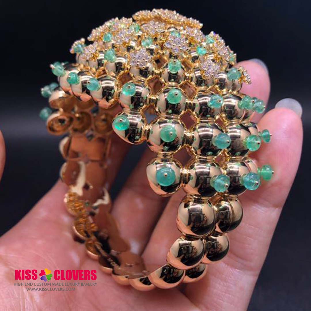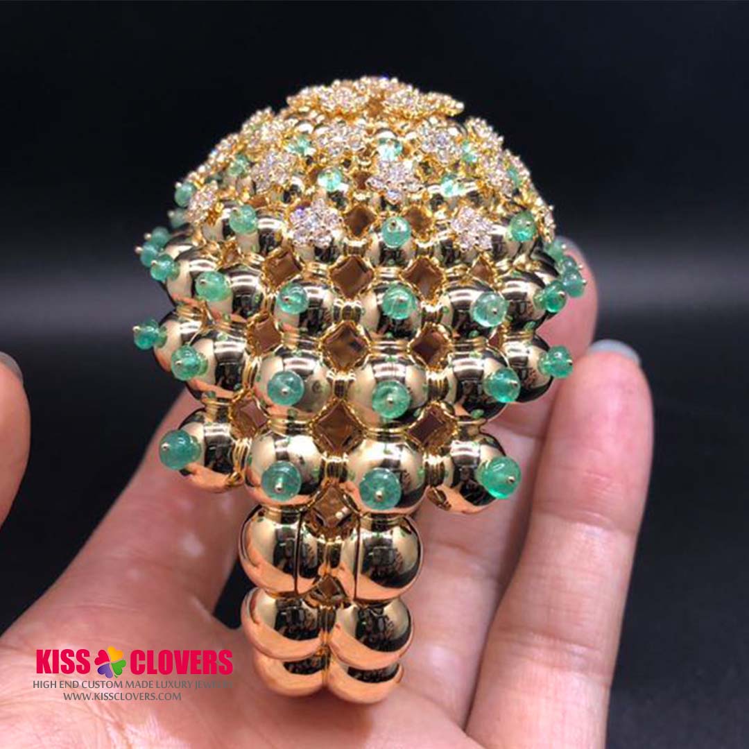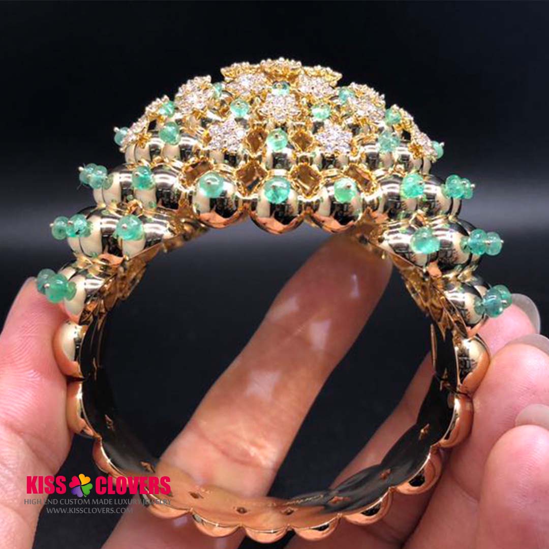 Do you love this Authentic 18K Yellow Gold Cactus de Cartier Emeralds Diamond Bracelet? Here at KissTheLuxury.com, we can do specially for you in amazing price. 100% mirror quality, real solid 18k gold and genuine diamonds guaranteed. Top workmanship and factory direct selling. Please inquire us via E-mail [email protected] or Whatsapp +1 (262)806-8175 for pricing.
