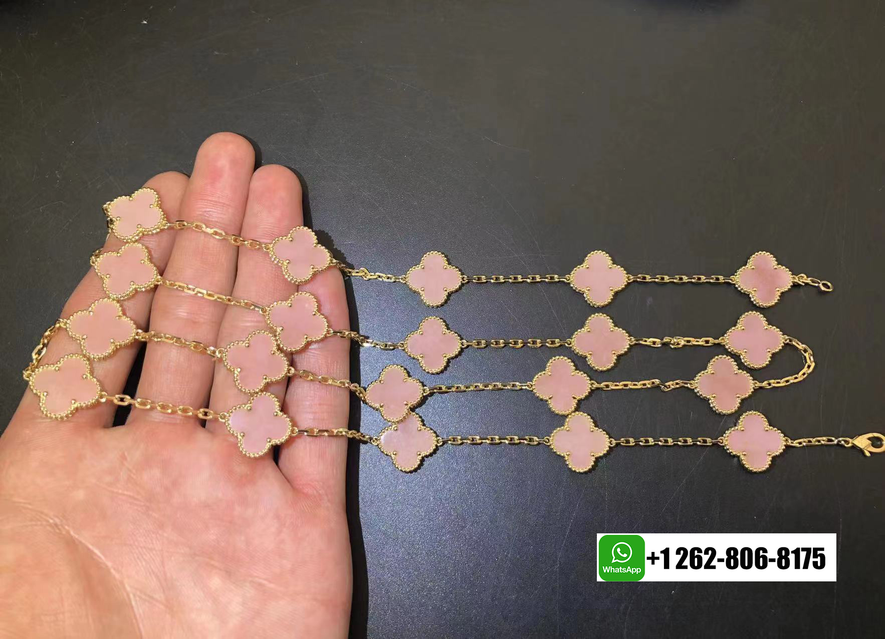 KissTheLuxury is a professional jewelry factory with more than 10 years experience. We can make any design of gold & diamonds jewelry as per your requirements. If you are interested in this Custom made Van Cleef & Arpels Vintage Alhambra 18K Yellow Gold Pink Opal 20 Motifs Long Necklace but don’t want to break your bank, Please feel free to contact us via the contact form via whatsapp +1 262 806 8175 or email [email protected].