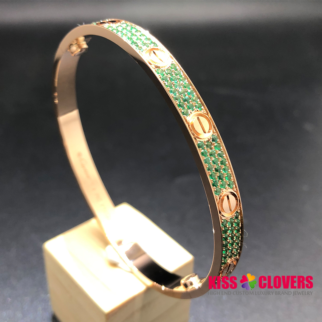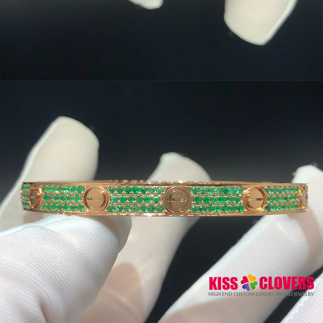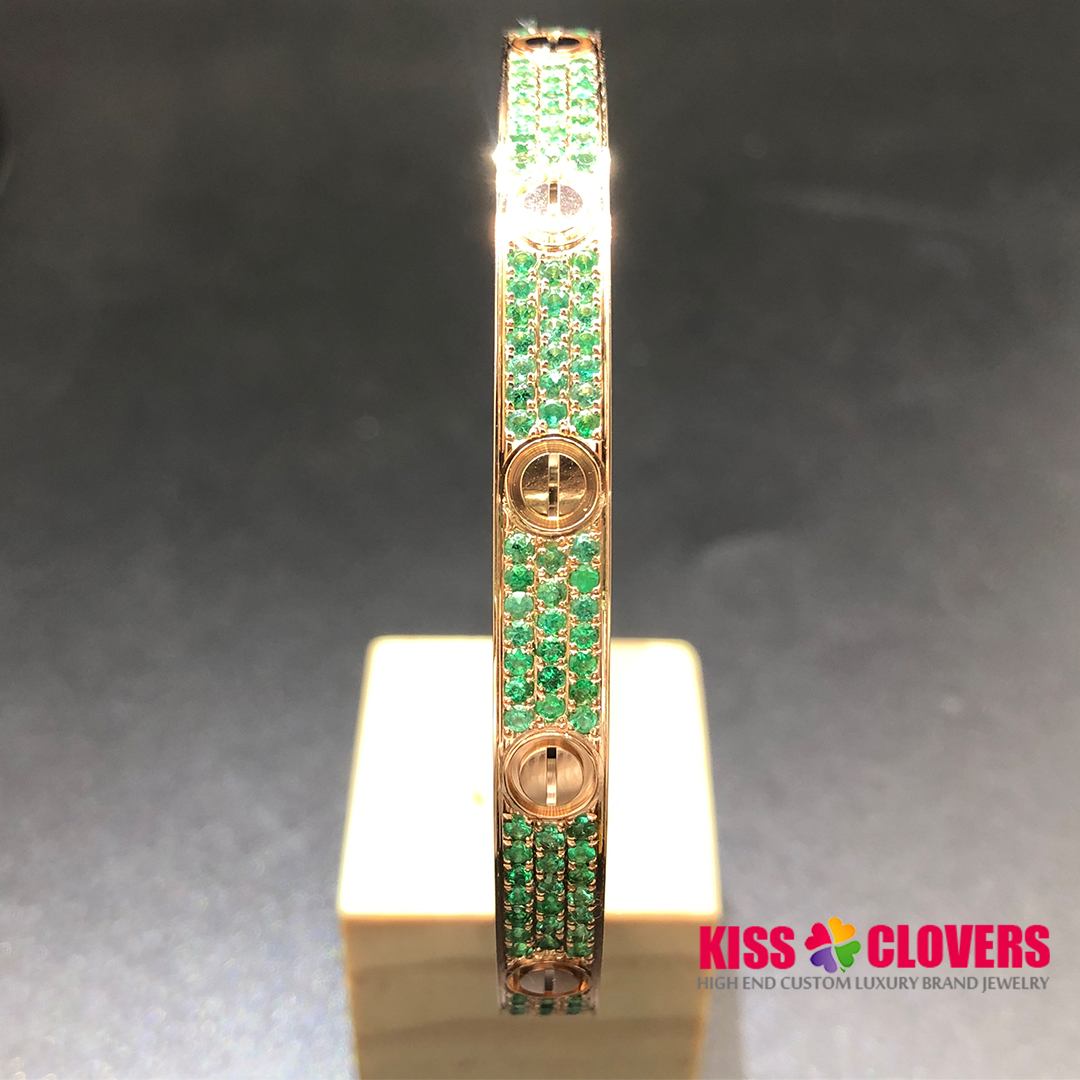 • Customised Cartier 18k Rose Gold Emerald Love Bangle Bracelet