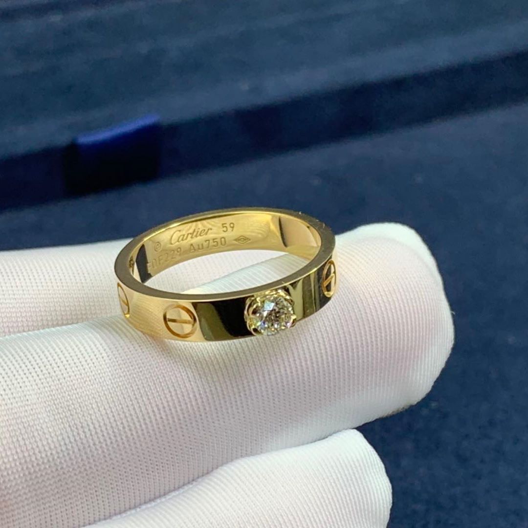 • Designer 18k Yellow Gold Cartier Love Solitaire Diamond Ring