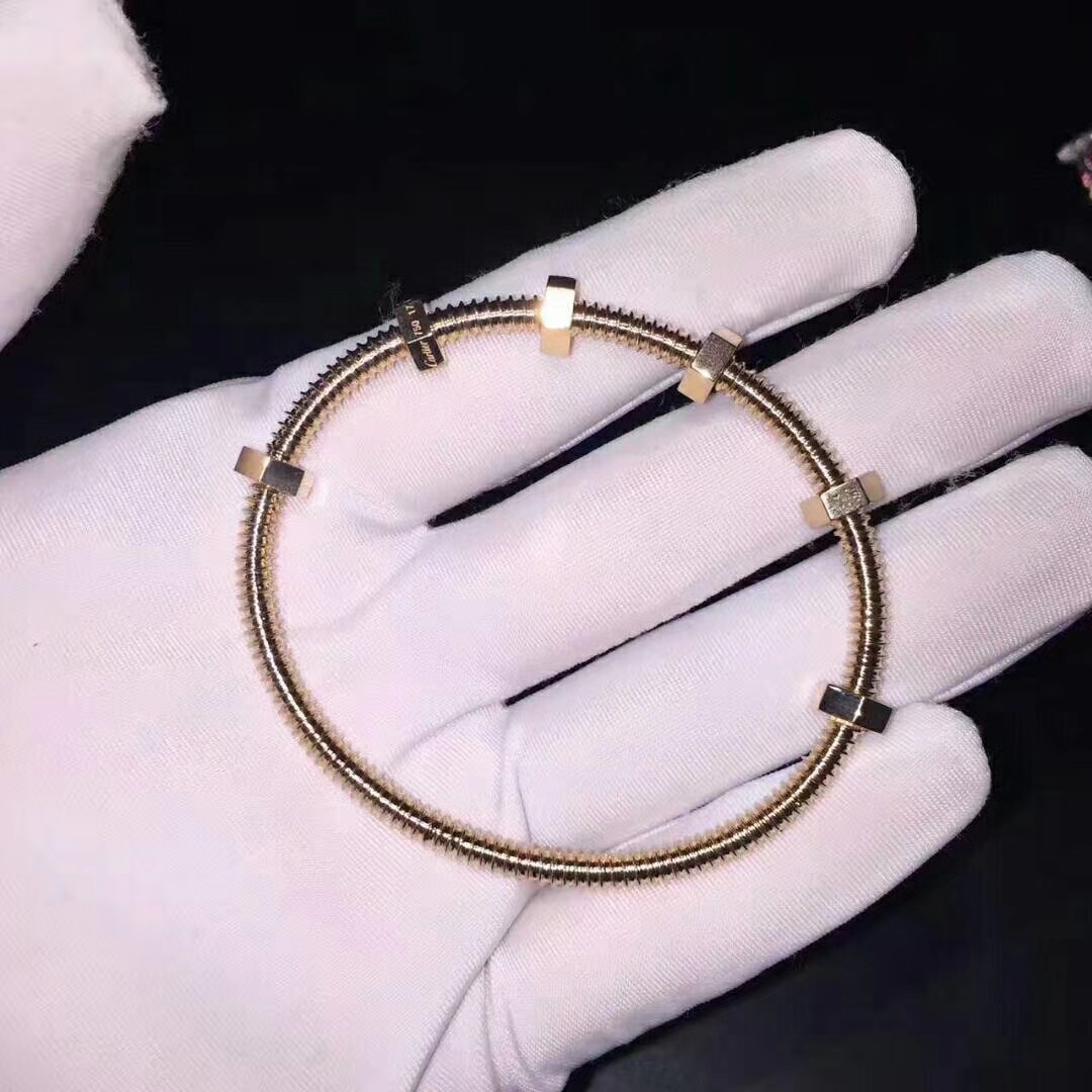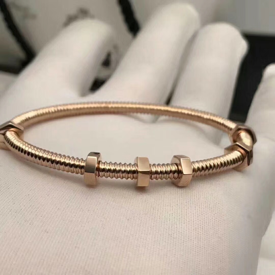Ecrou de Cartier bracelet 18K pink gold. Cartier always seeks to perfect the harmony of each one of its creations. Because of this, the carat weight and the number of precious stones can vary slightly from piece to piece.