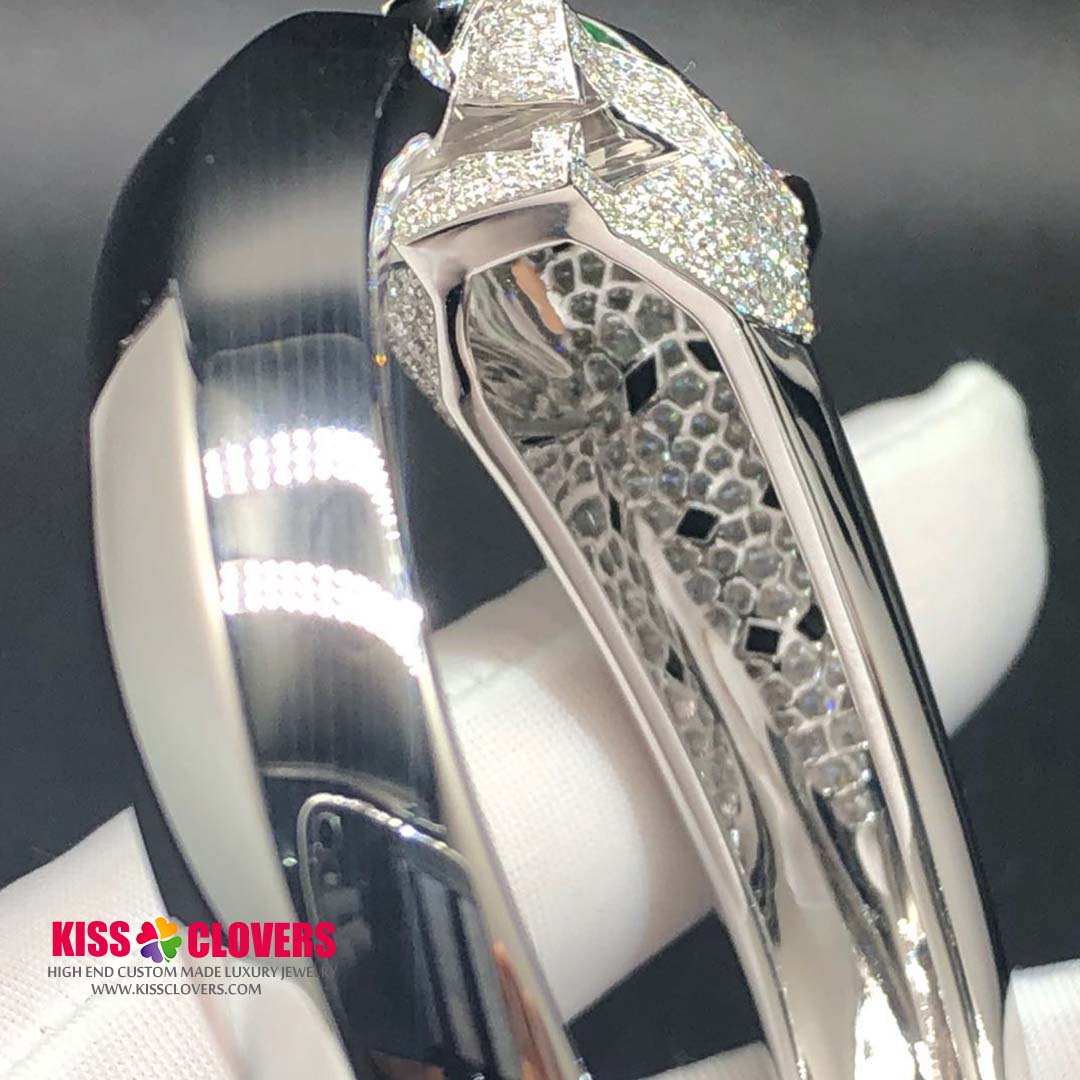Do you love this Authentic Panthere de Cartier 18k White Gold Diamonds Emeralds Onyx Bracelet? Here at KissTheLuxury.com, we can do specially for you in amazing price. 100% mirror quality, real solid 18k gold and genuine diamonds guaranteed. Top workmanship and factory direct selling. Please inquire us via E-mail [email protected] or Whatsapp +1 (262)806-8175 for pricing.