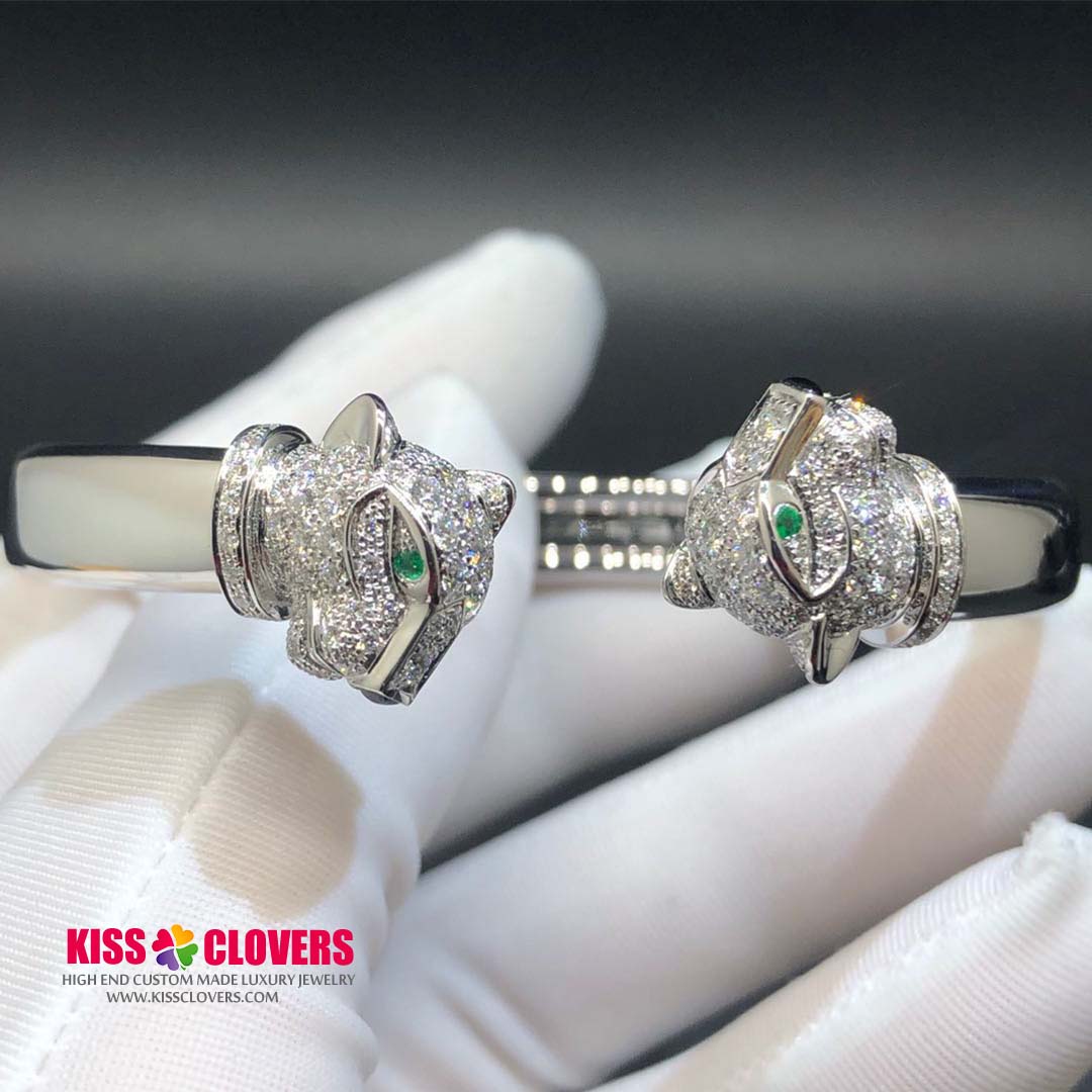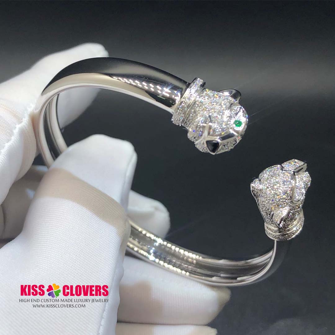 Panthère de Cartier Bracelet Double Panthere Heads 18K White Gold set with 194 Diamonds, Emeralds and Onyx N6706217