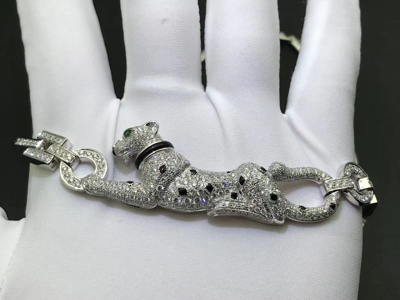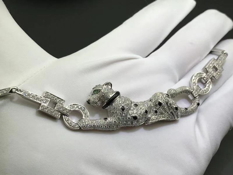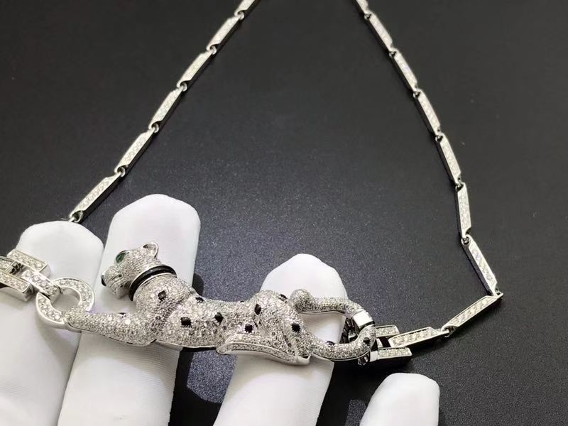 Panthère de Cartier necklace, 18K white gold, set with 469 brilliant-cut diamonds totaling 5.41 carats. Emerald, onyx.
