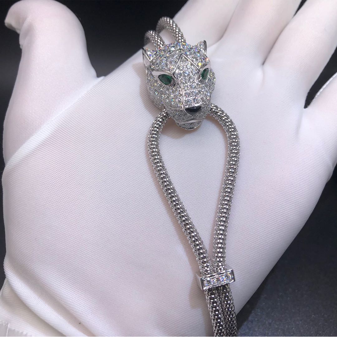 Buy Real solid 18k gold and genuine diamonds Cartier jewelry from KissTheLuxury.com. Top workmanship and factory direct selling. If you love this Authentic Cartier Panthère de Cartier Necklace 18K White Gold with 195 Diamonds-Paved, Please inquire us via E-mail [email protected] or Whatsapp +1 (262)806-8175 for pricing.