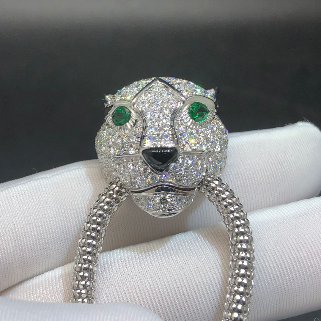 Panthère de Cartier Necklace, 18K white gold, set with emeralds, onyx and 195 brilliant-cut diamonds totalling 5.68 carats.