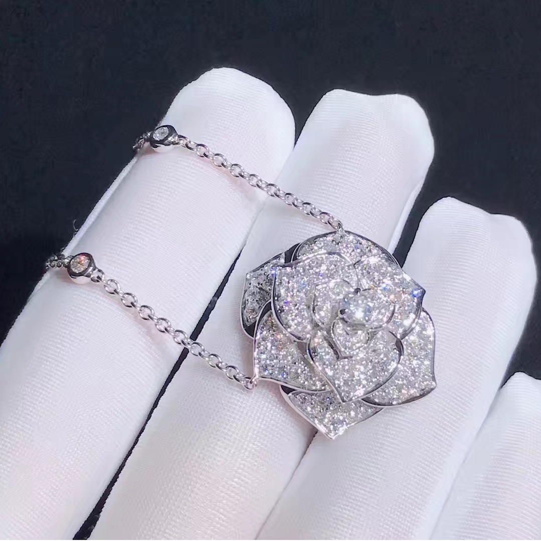 • Piaget 18k White Gold with 118 Diamonds 2.86ct Rose Pendant Necklace G33U0061