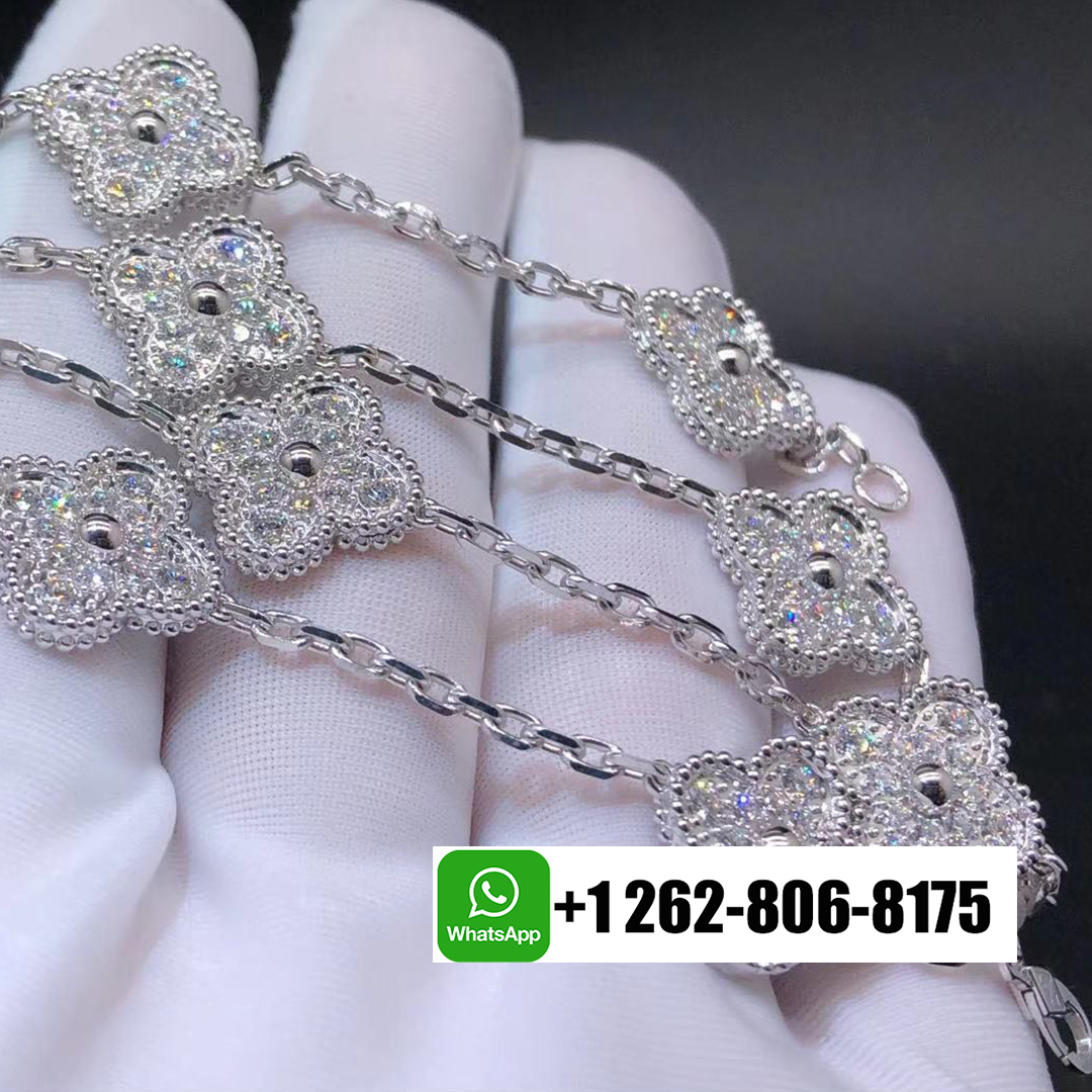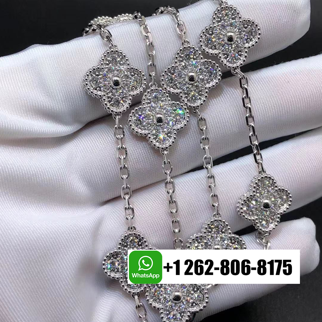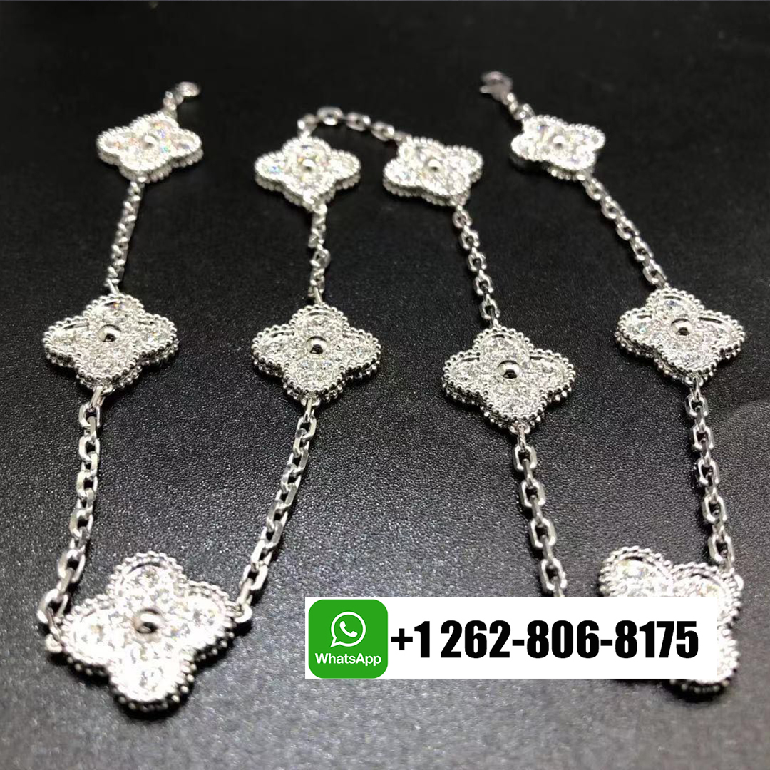 KissTheLuxury is professional in custom-made real 18k gold jewelry for 10 years. We have more than 6,500+ customers in all over the world. You will get an amazing low price with 100% mirror High quality Van Cleef & Arpels jewelry, like this Custom Van Cleef & Arpels 18k White Gold 10 Motifs Diamond Vintage Alhambra Necklace. Also, we have professional after-sale services to support 7*24 hours of service. Wherever you are, the jewelry can be delivered via DHL or FedEx.