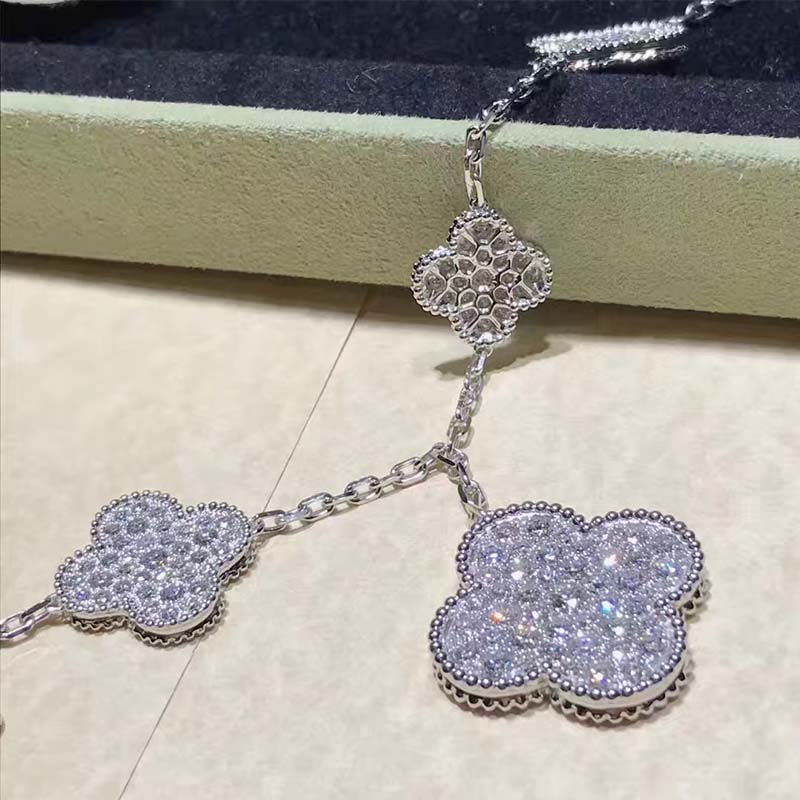If you are interesting in this custom made Van Cleef & Arpels 18k White Gold 5 Motifs Diamond Magic Alhambra Clover Bracelet, here at KissTheLuxury.com, we can do specially for you in amazing price. 100% mirror quality, Same as original but cost much less!Top workmanship and factory direct selling. Please inquire us via E-mail [email protected] or Whatsapp +1 (262)806-8175 for pricing.