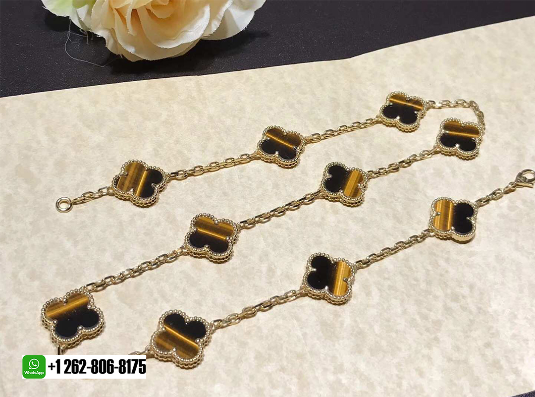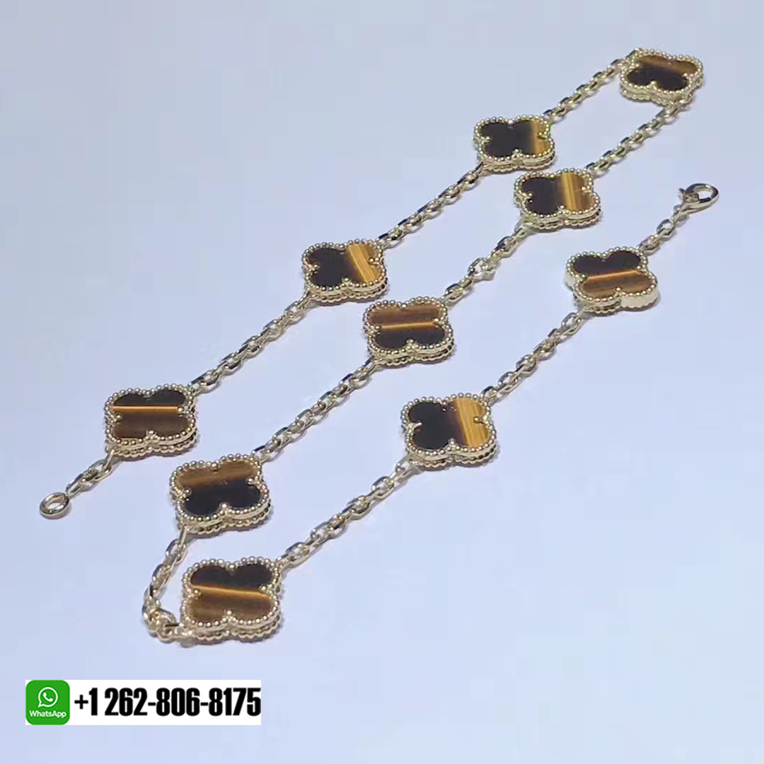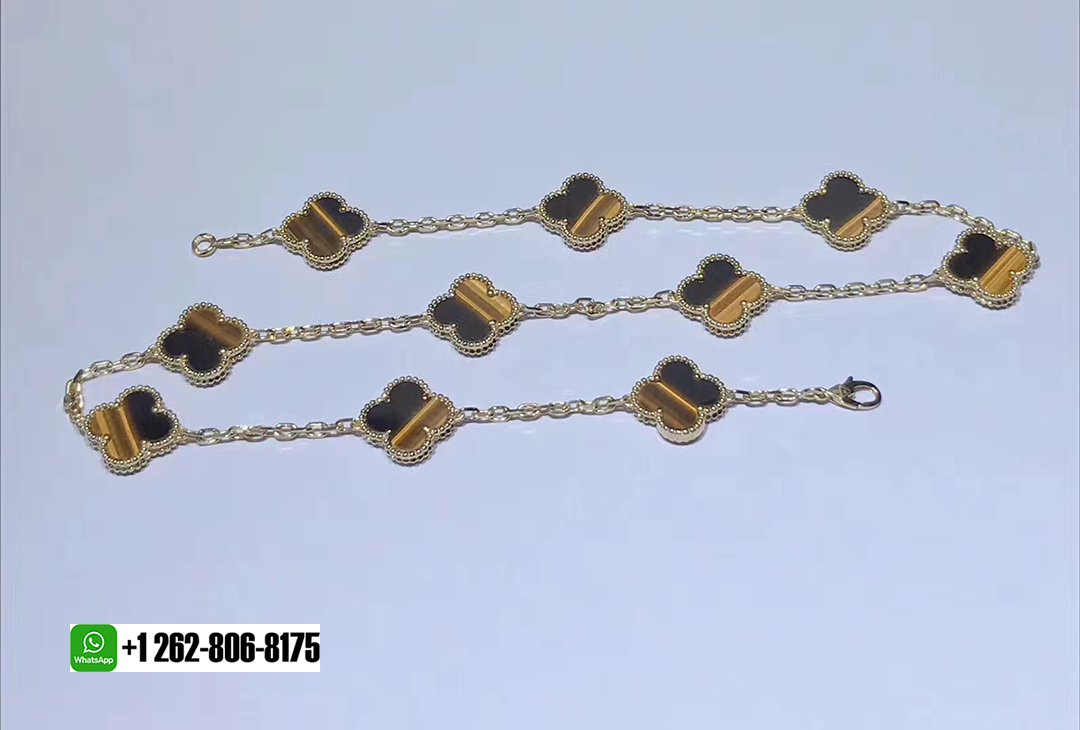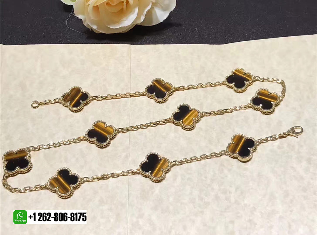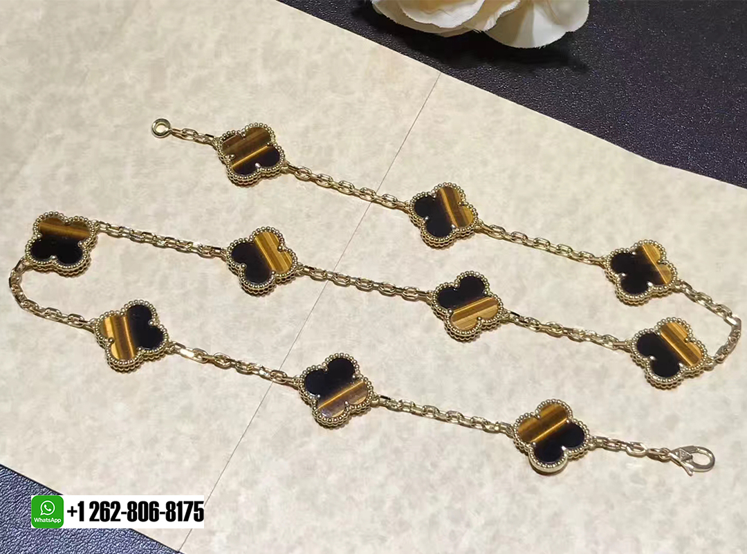 KissTheLuxury is a professional jewelry factory with more than 10 years experience. We can make any design of gold & diamonds jewelry as per your requirements. If you are interested in this Authentic Van Cleef & Arpels 18k Yellow Gold and Tiger’s Eye Vintage Alhambra 10 Motif Necklace, Please contact us via the contact form via whatsapp +1 262 806 8175 or email [email protected].