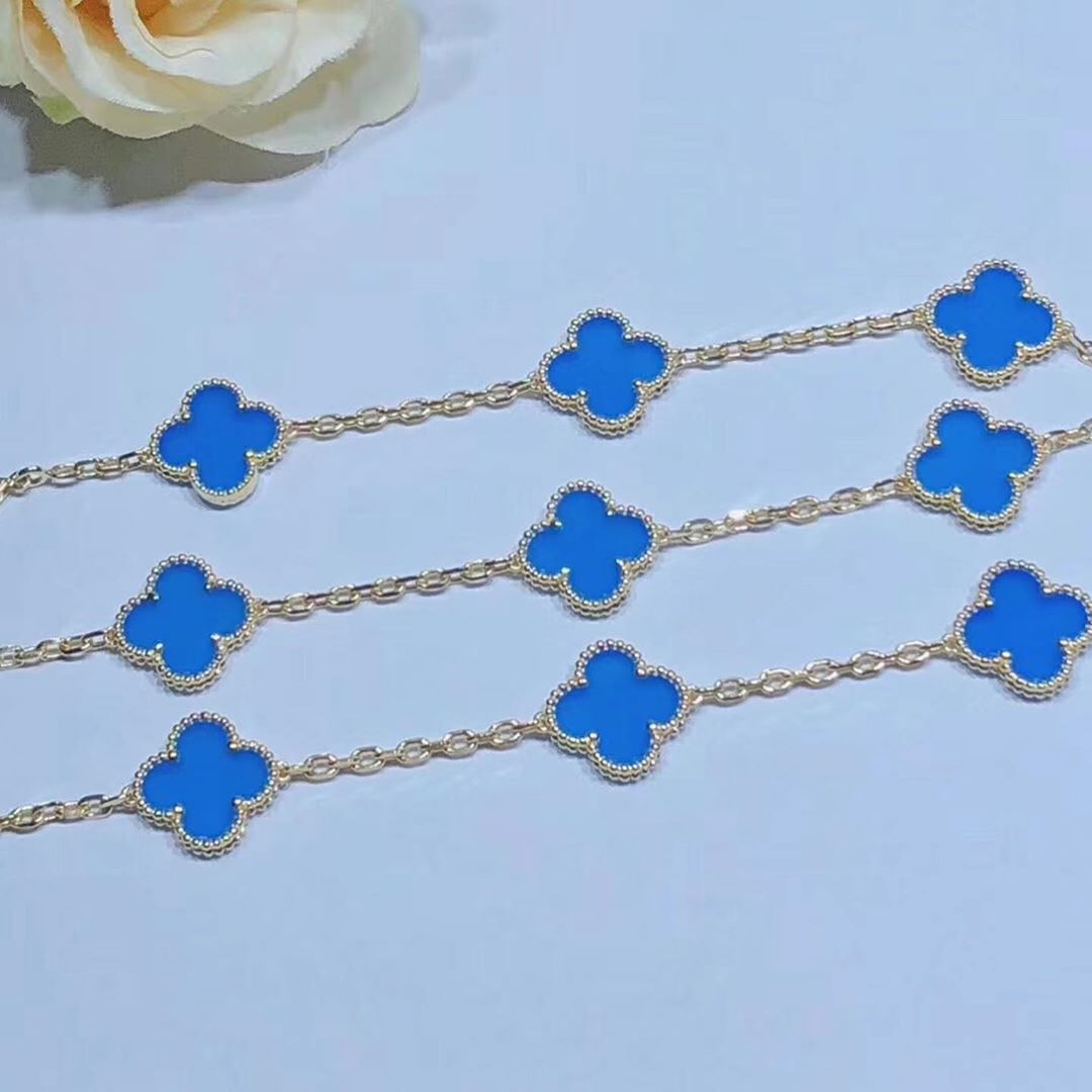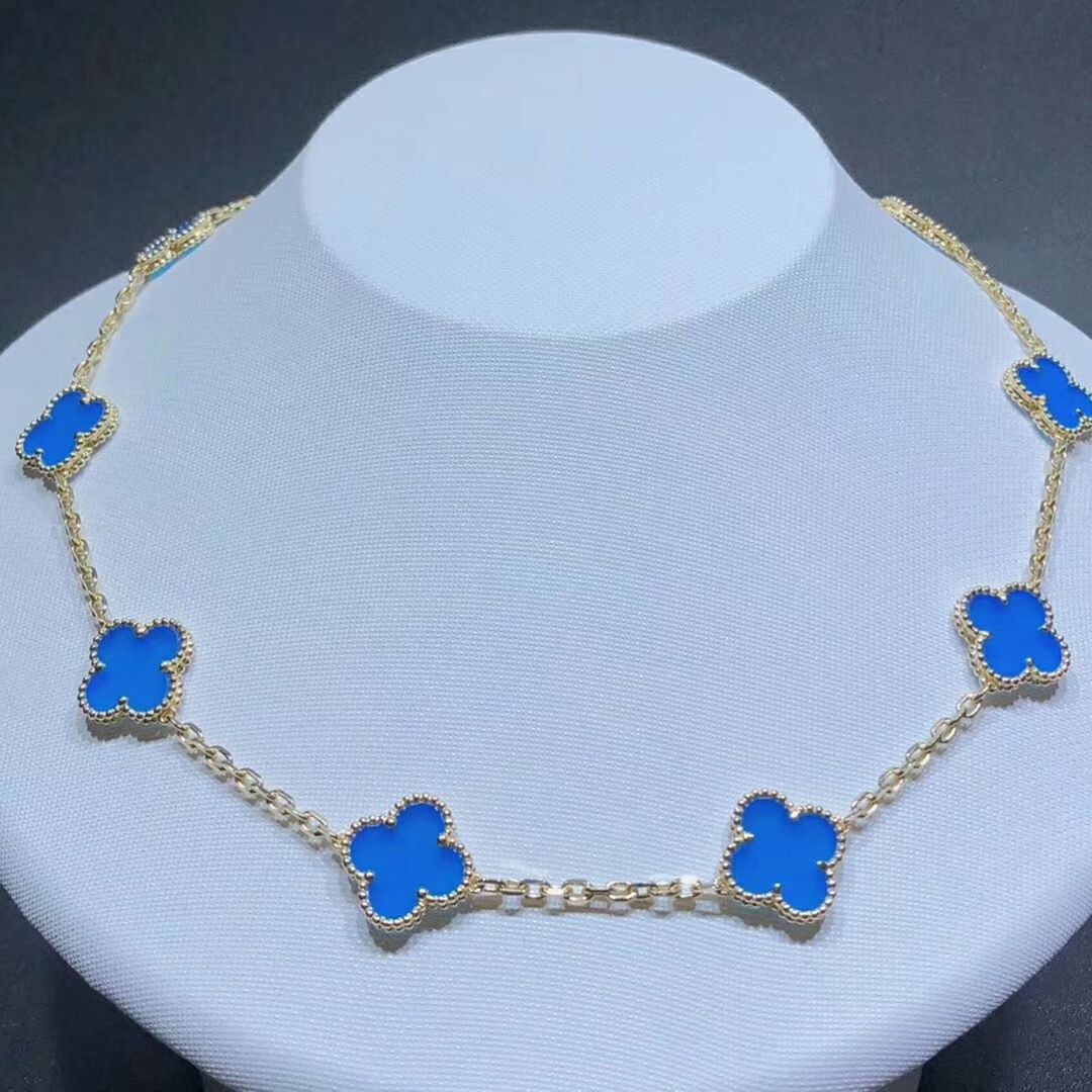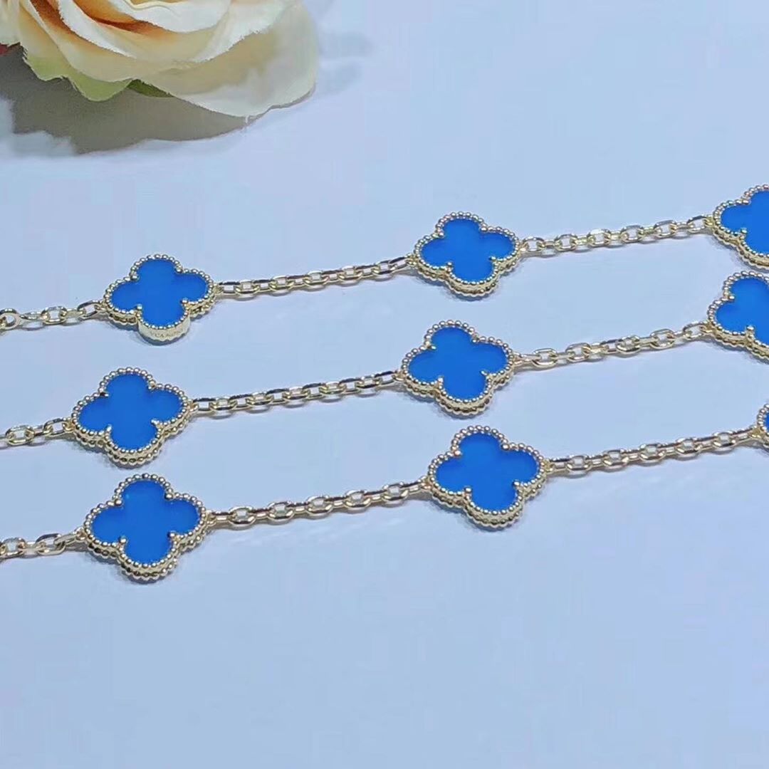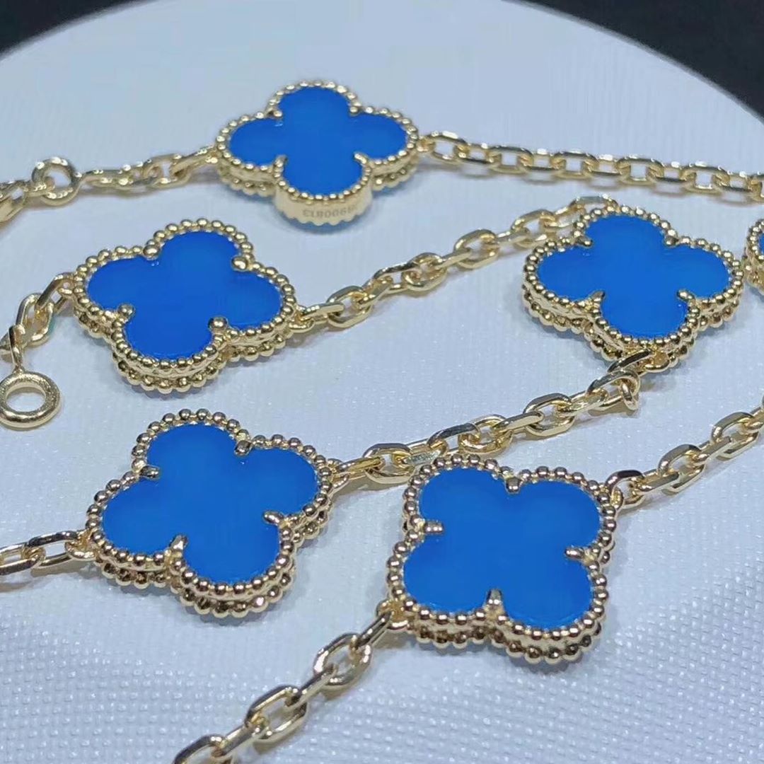 KissTheLuxury is a professional jewelry factory with more than 10 years experience. We can make any design of gold & diamonds jewelry as per your requirements. If you are interested in this Authentic Van Cleef & Arpels 18k Yellow Gold Blue Agate Vintage Alhambra 10 Motif Necklace, Please contact us via the contact form via whatsapp +1 262 806 8175 or email [email protected].