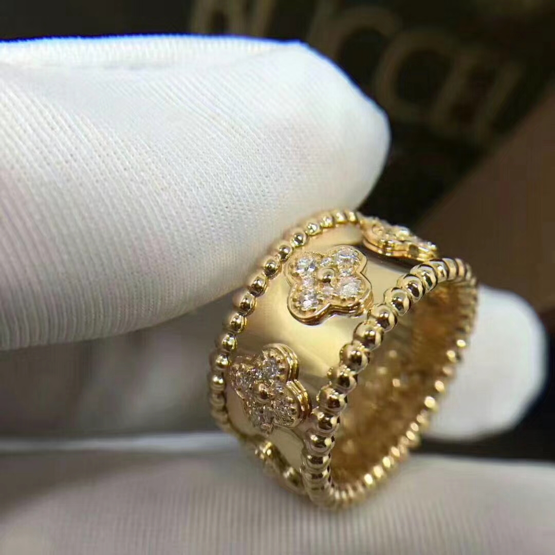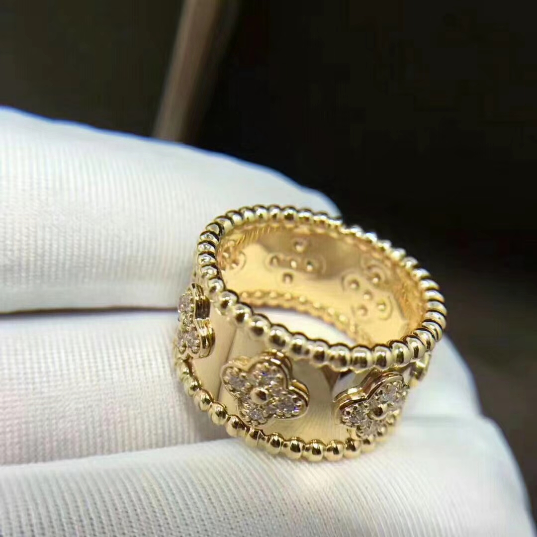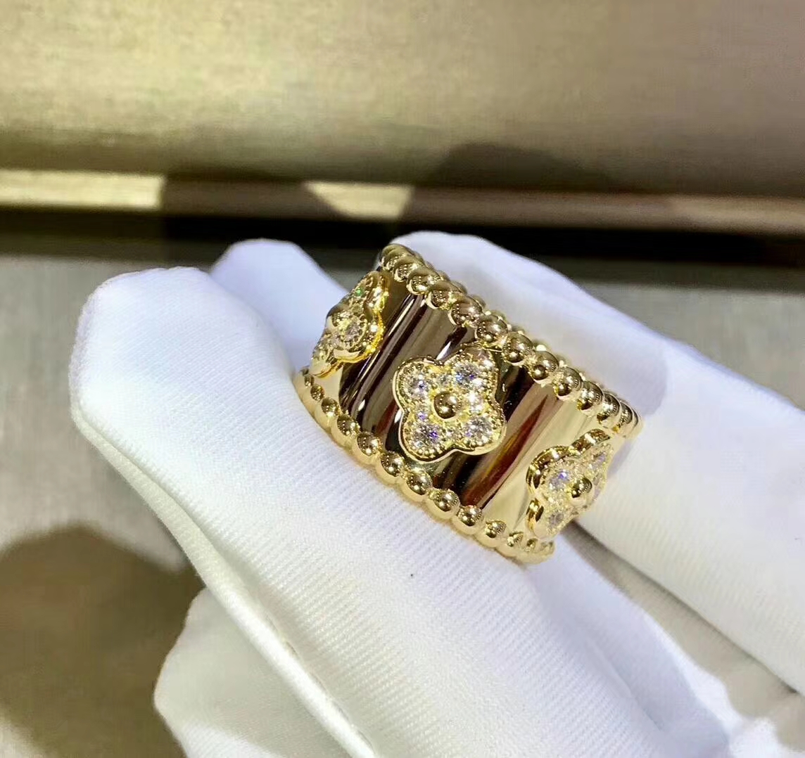 Van Cleef & Arpels 18k Yellow Gold Perlée Clover Diamond Ring VCARO9LO00