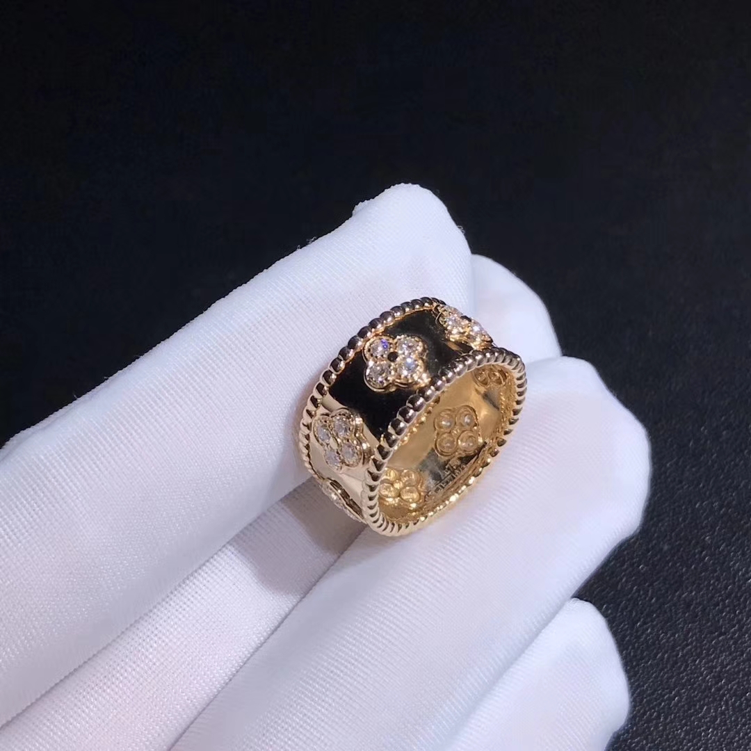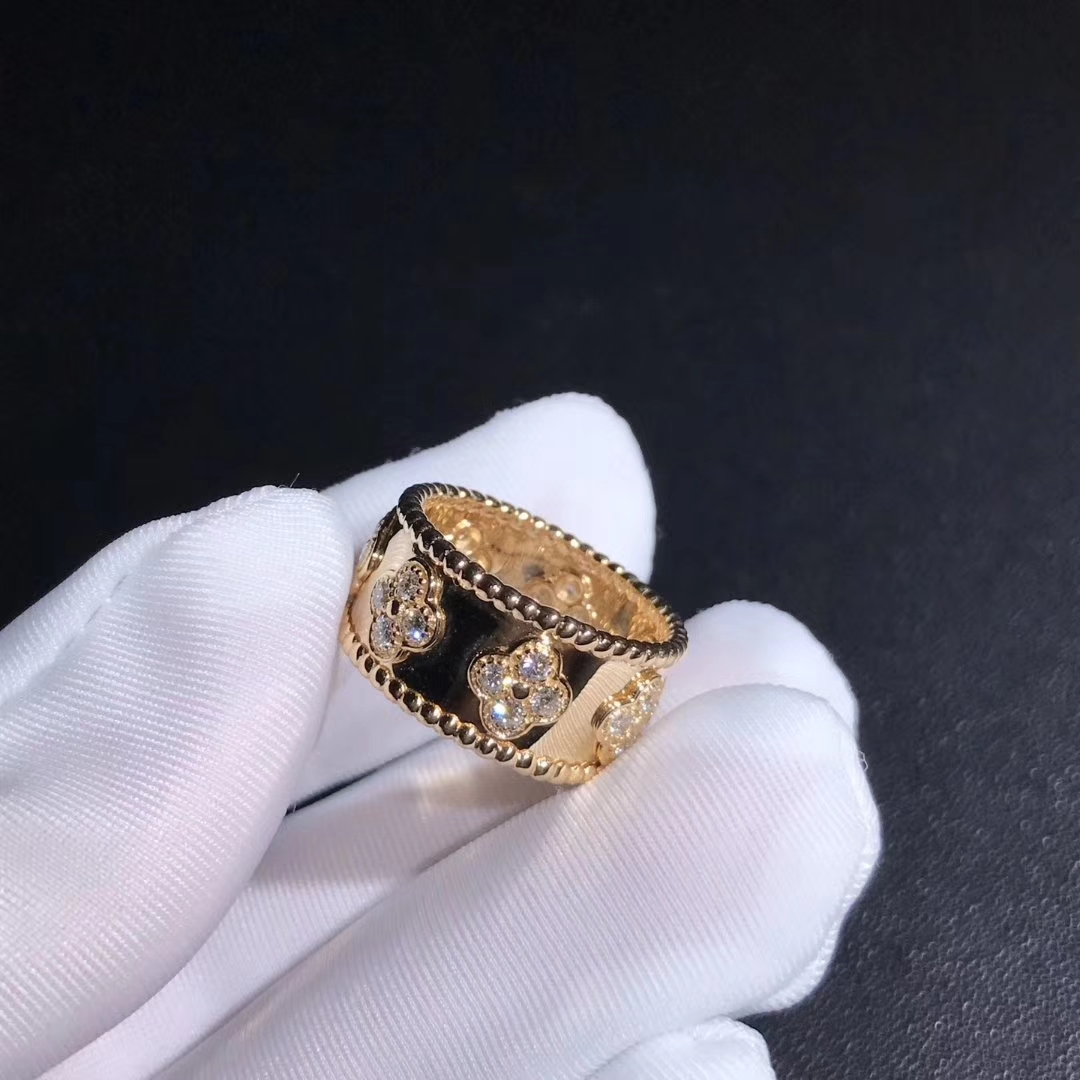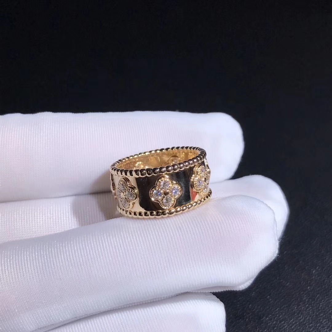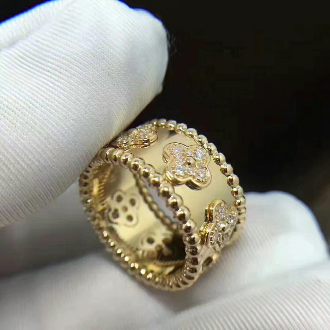 Van Cleef & Arpels 18k Yellow Gold Perlée Clover Diamond Ring VCARO9LO00