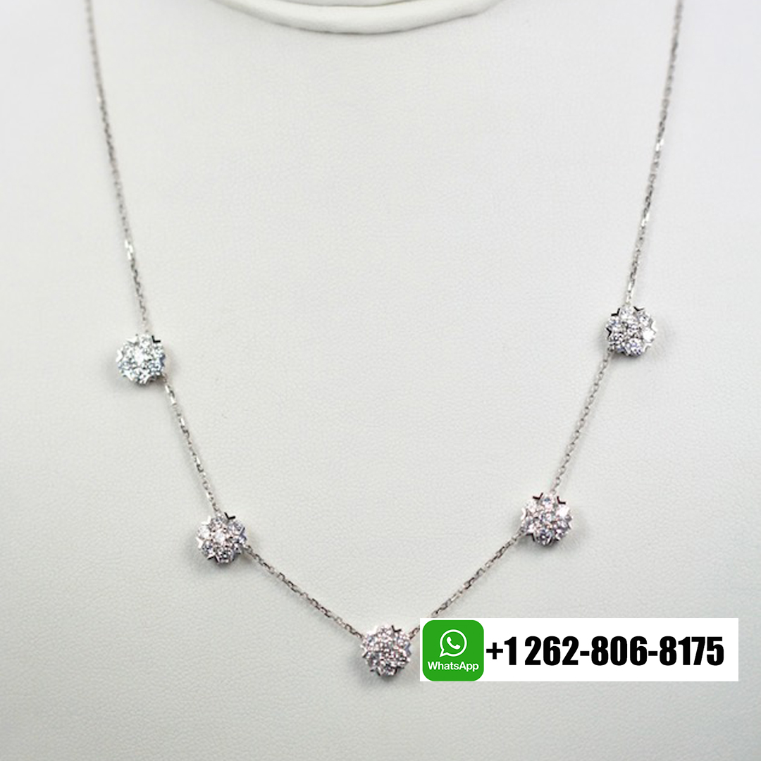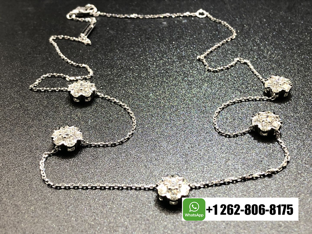 KissTheLuxury is a professional jewelry factory with more than 10 years experience. We can make any design of gold & diamonds jewelry as per your requirements. If you are interested in this Custom made Van Cleef & Arpels Fleurette 18K White Gold 5 Flowers Diamonds Large Model Necklace but don’t want to break your bank, Please feel free to contact us via the contact form via whatsapp +1 262 806 8175 or email [email protected].