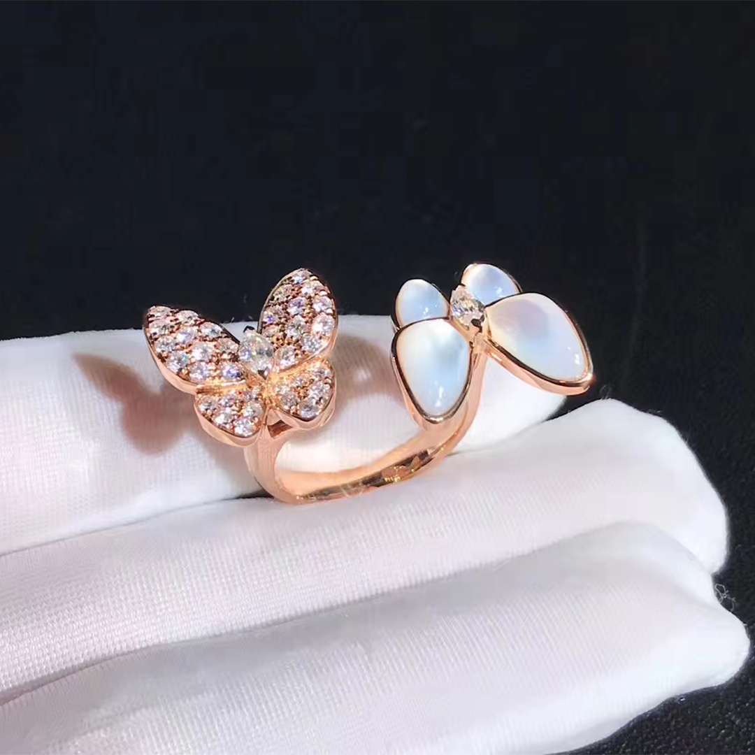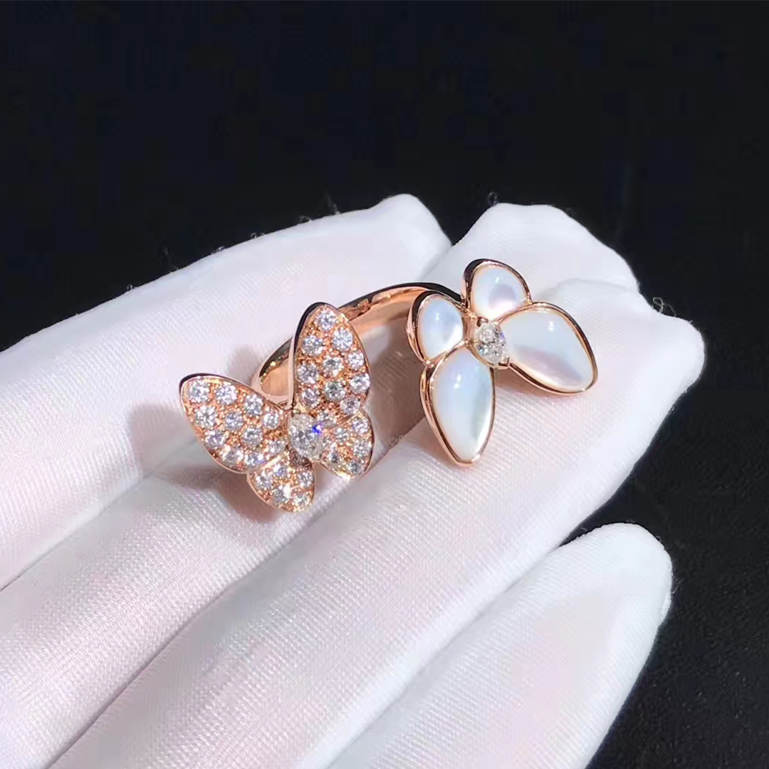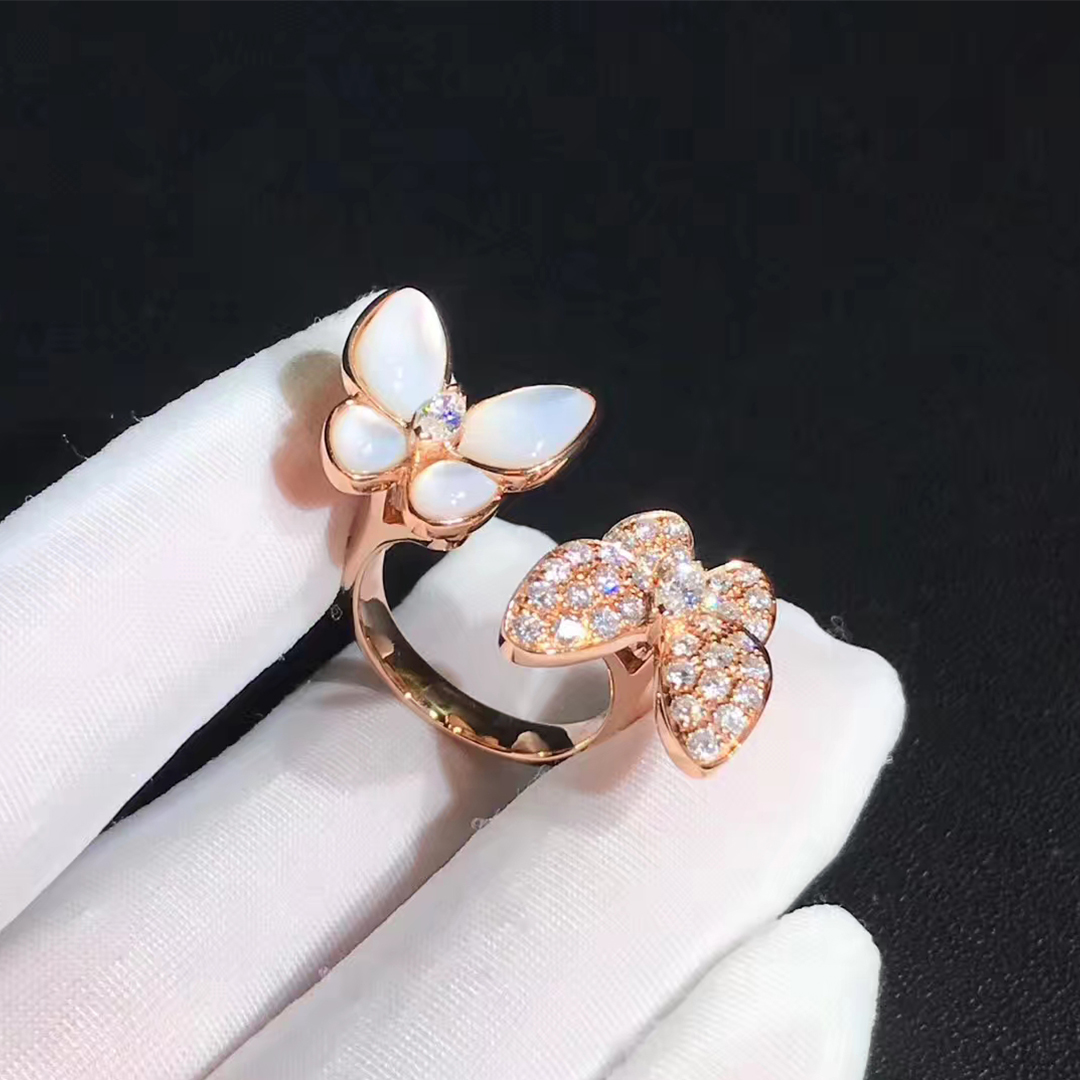 • VCA 18k Rose Gold Diamond and Mother-of-pearl Two Butterfly Between the Finger Ring VCARO7AL00