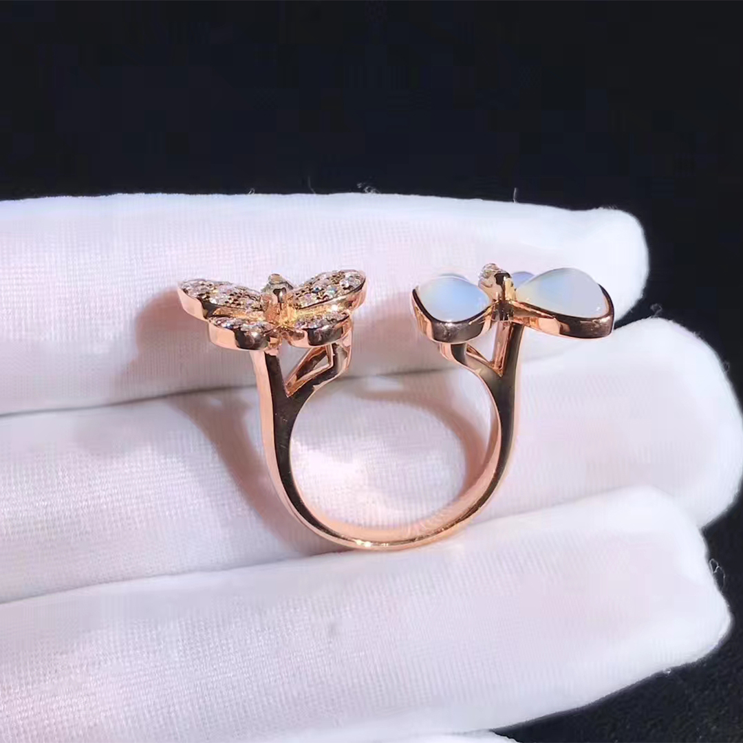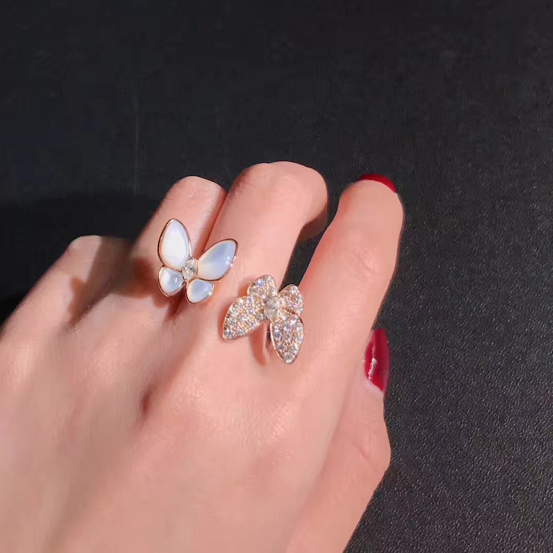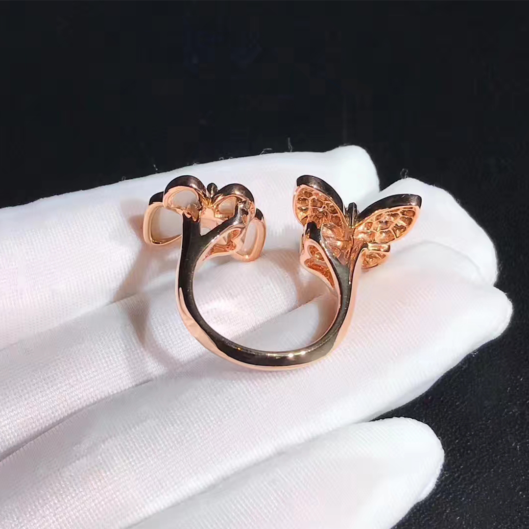 • VCA 18k Rose Gold Diamond and Mother-of-pearl Two Butterfly Between the Finger Ring VCARO7AL00