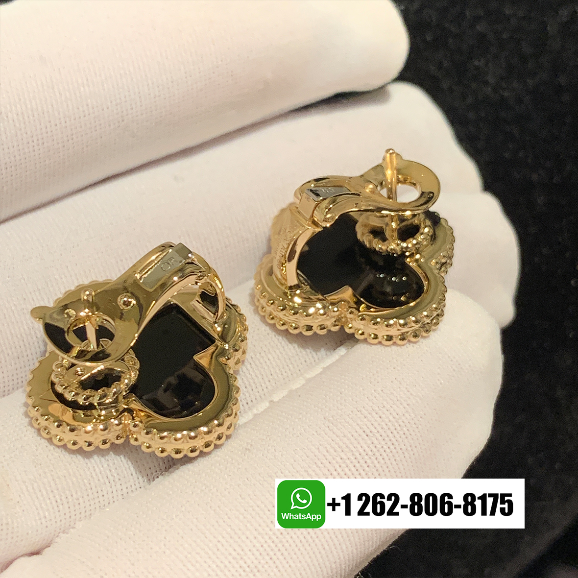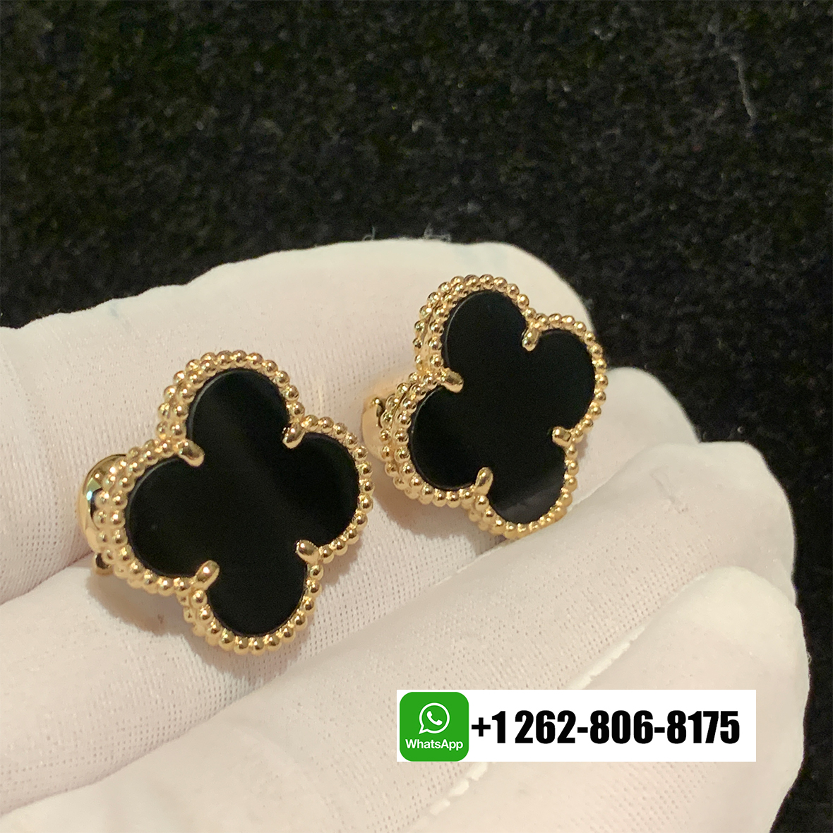 KissTheLuxury is a professional jewelry factory with more than 10 years experience. We can make any design of gold & diamonds jewelry as per your requirements. If you are interested in this Custom madeVan Cleef & Arpels Magic Alhambra Onyx & 18k Yellow Gold Single Motif Earrings but don’t want to break your bank, Please feel free to contact us via the contact form via whatsapp +1 262 806 8175 or email [email protected].