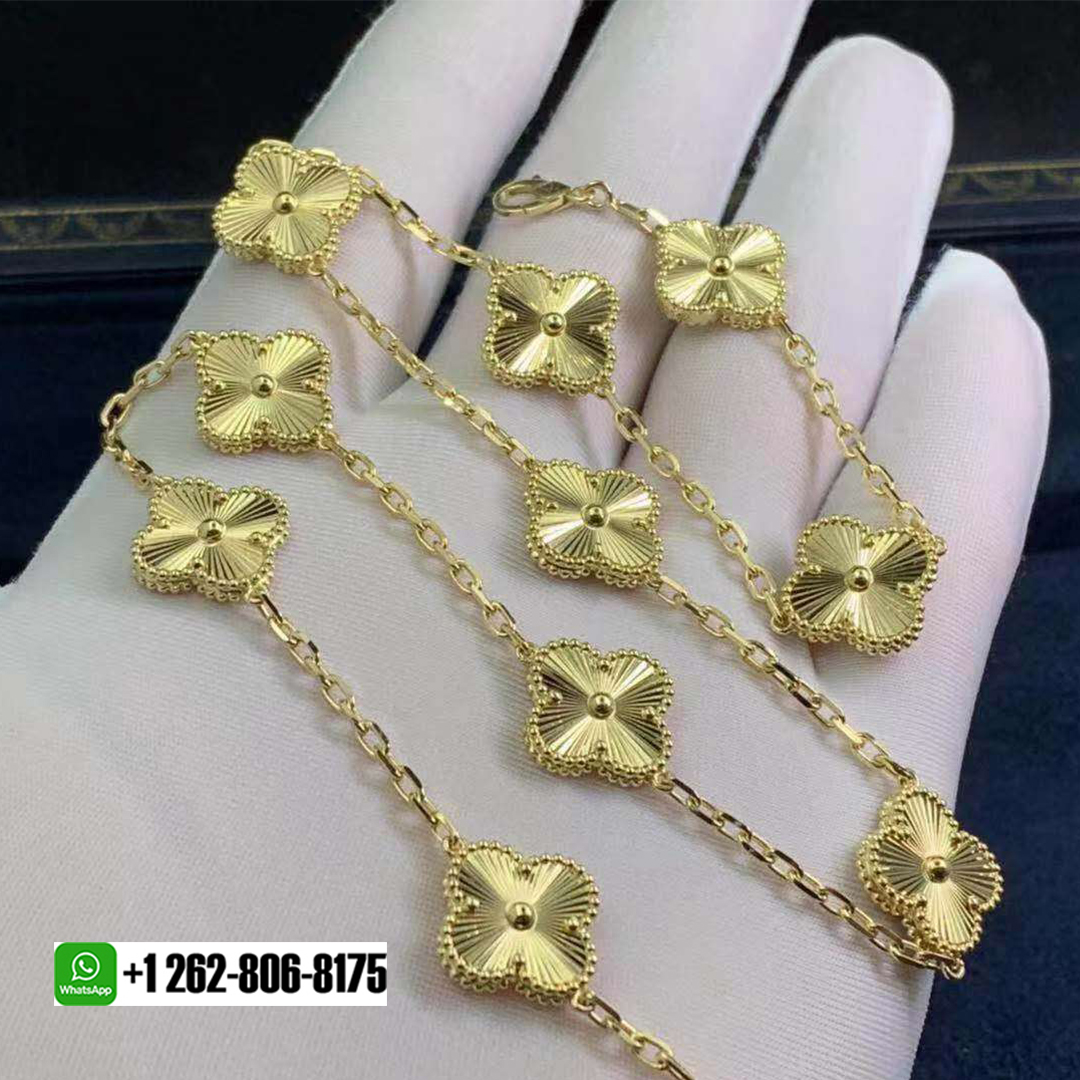 • VCA Vintage Alhambra 10 motifs Guilloché Yellow Gold Necklace VCARP3JJ00