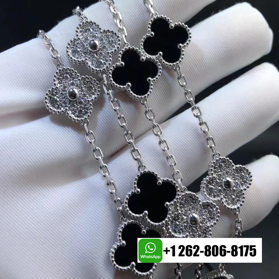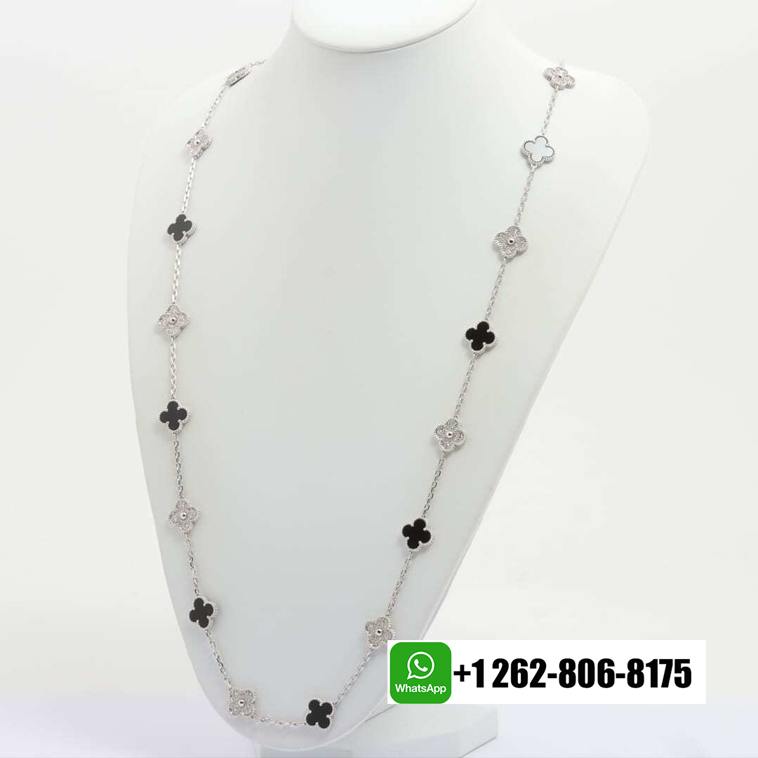 • VCA Vintage Alhambra 18k White Gold 20 Motif Diamond & Onyx Long Necklace VCARP2R800