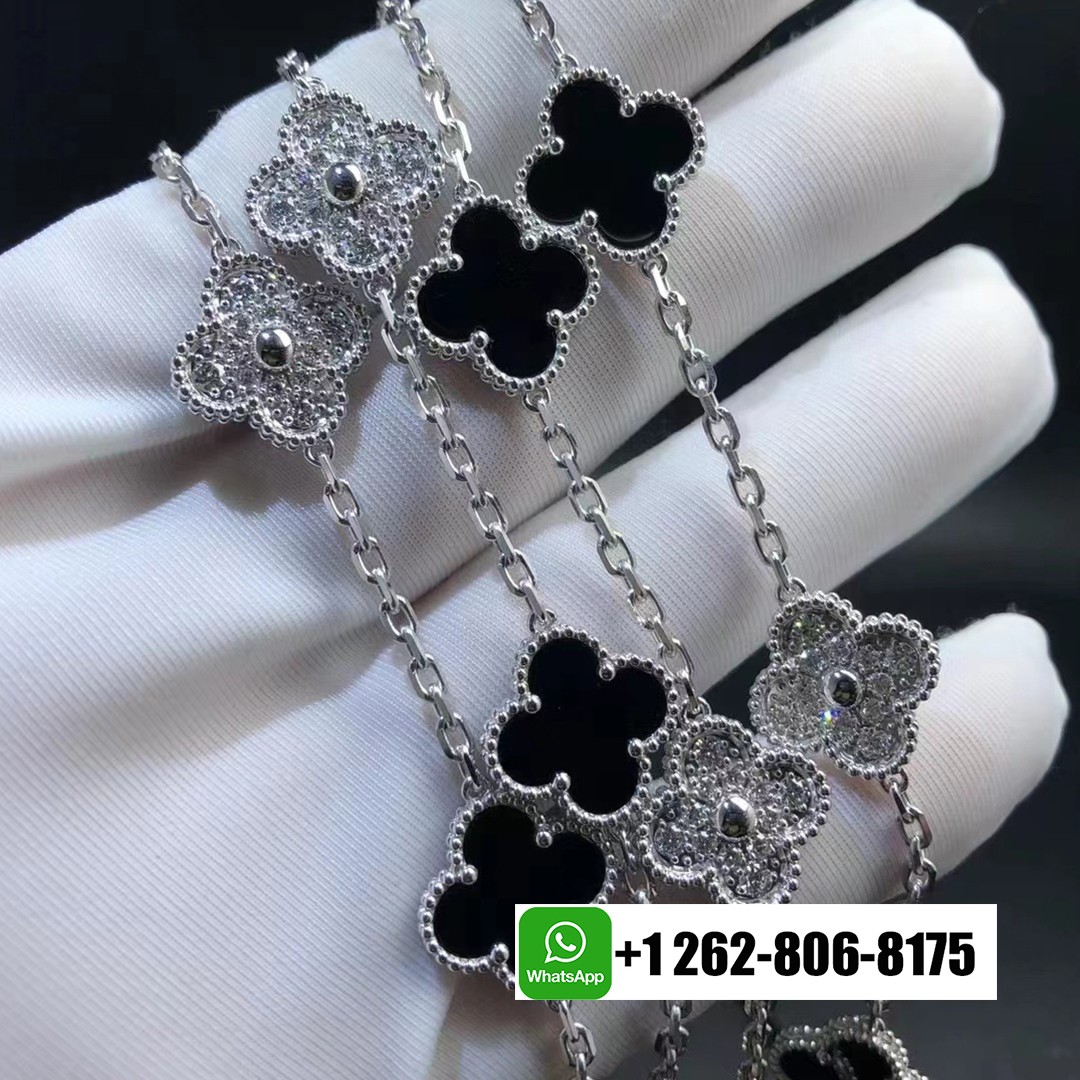 KissTheLuxury is a professional jewelry factory with more than 10 years experience. We can make any design of gold & diamonds jewelry as per your requirements. If you are interested in this Custom made VCA Vintage Alhambra 18k White Gold 20 Motif Diamond & Onyx Long Necklace but don’t want to break your bank, Please feel free to contact us via the contact form via whatsapp +1 262 806 8175 or email [email protected].